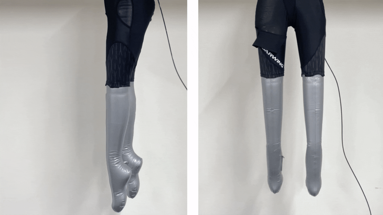 空気が抜けるにつれ、自然と脚が引きあがりました!