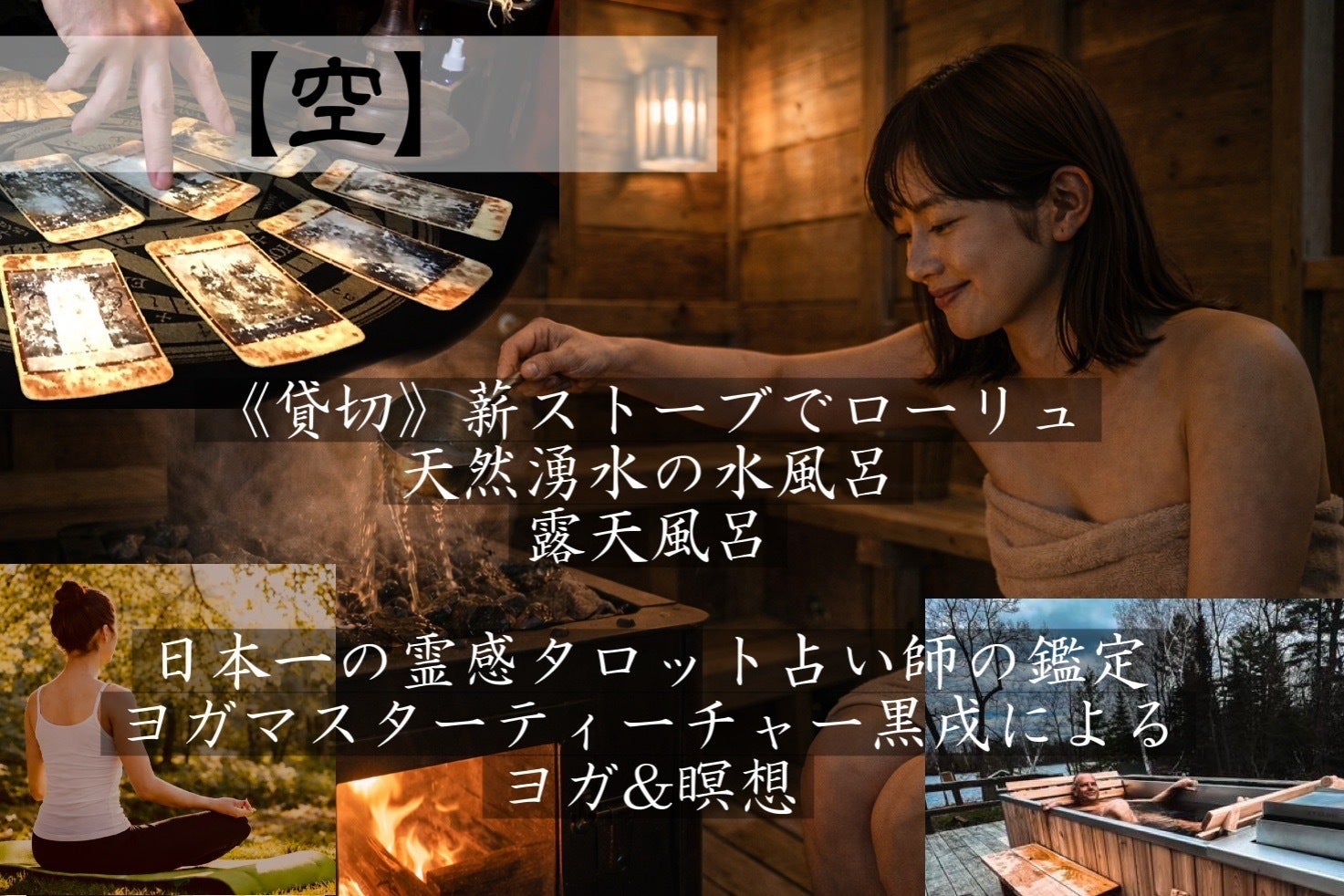 宿泊期間中は黒戌がホストとしてお客様をサポート。貸切露天風呂と蔵サウナ「蔵龍」でのリラクゼーションのほか、ランク別で様々な体験型アクティビティをご用意。都会の喧騒から離れた緩やかな時間の中で現地の精進料理とヨガマスターによる無理のないリラクゼーションヨガにて心と体をほぐし、自然の中で伝統的な本場の瞑想を行い、自分を深く見つめ直す、そんな《魂と自然を結ぶリトリート》を提供致します。