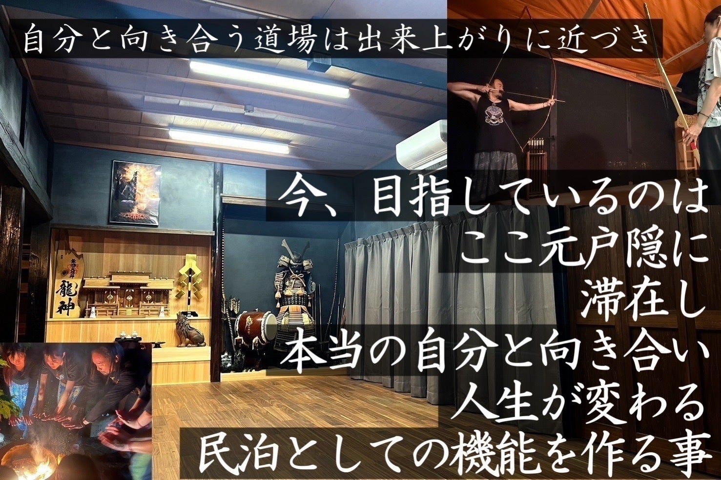 2021年に元戸隠と呼ばれる聖域にある築120年以上の古民家を購入、過疎化した地域の村おこしとして、戸隠の自然豊かな環境を活かした観光業の発展に情熱を注ぎ、コツコツと古民家のリノベーションをしながら、古武術とインドヨガを学ぶ合宿場を運営してきました。