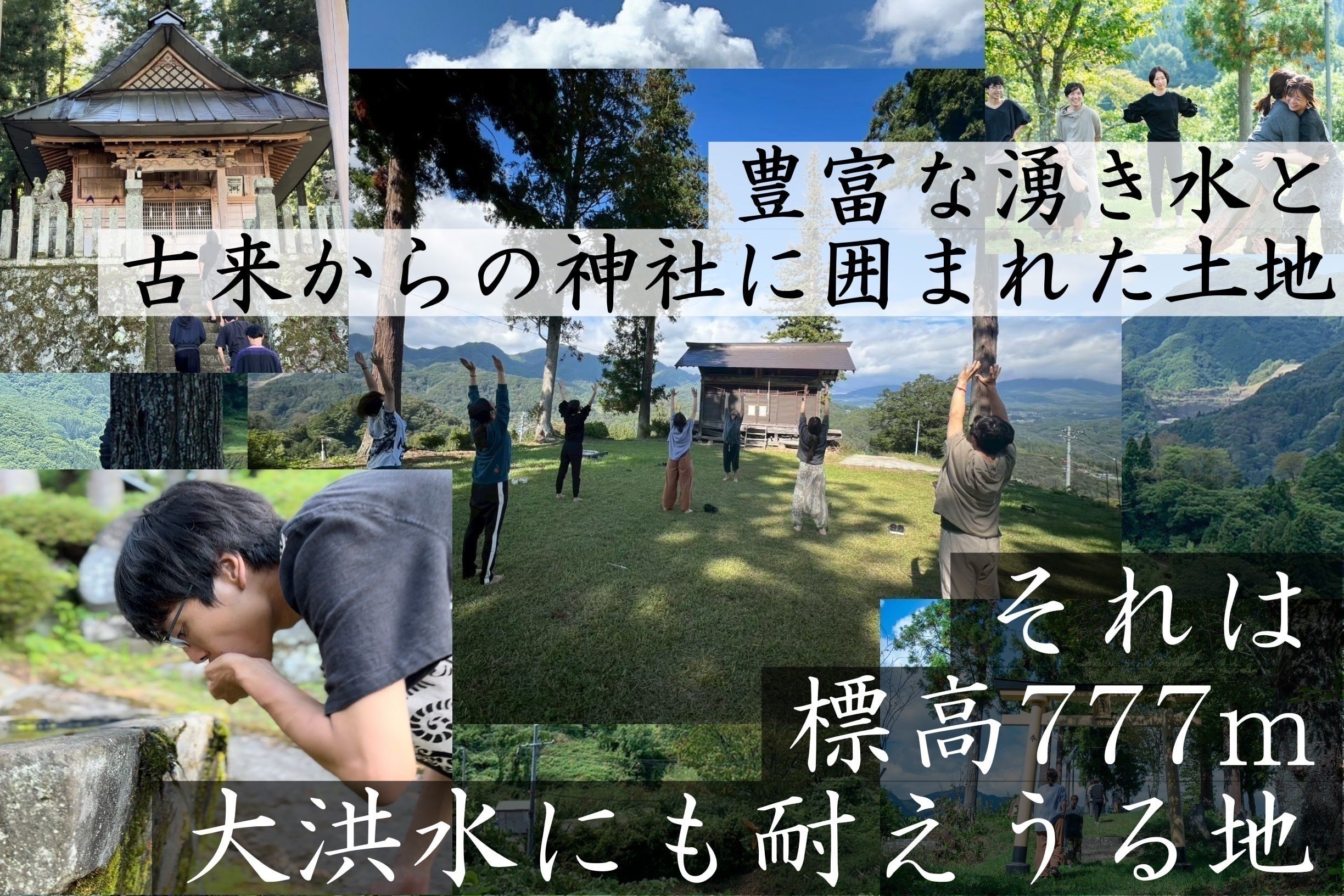 私が長野に永住を決めた1番の理由は「大災害への備え」です。いつ噴火してもおかしくないと多くの専門家が語る富士山が噴火した場合に火山灰などの被害がない最も安全な場所のひとつが長野県と言われています。特に私が永住を決めた元戸隠と呼ばれる地域は、縄文時代から変わらず今の姿を残す標高777mの地図にも載っていない隠された聖域にあります。大洪水が起きた場合の安全な標高は600m以上といわれています。大災害、大洪水に耐えうる村を我々の力で蘇らせ、自然農園を作り、子供も大人も笑顔で助け合える村を創りたいのです。