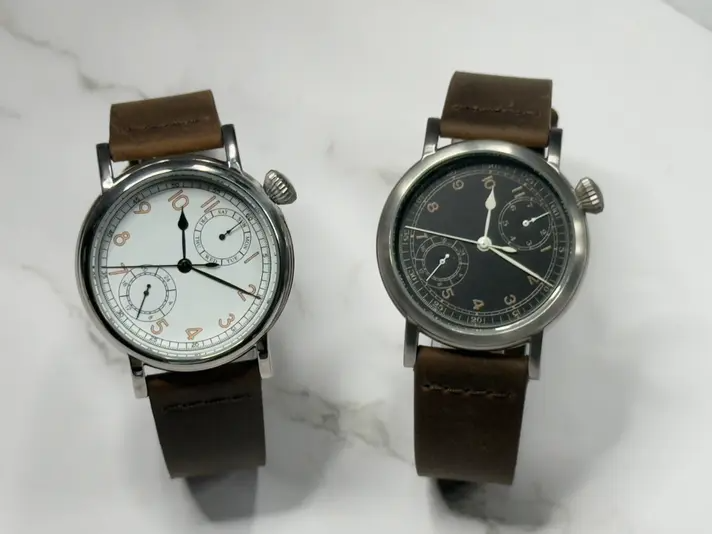 前記にあるようにこのモデルは1940年まではホワイトダイヤルでした。ホワイト及びブラック共に文字盤は、スイスに実在したAR&J.E.MEYLAN社の文字盤をオマージュしています。