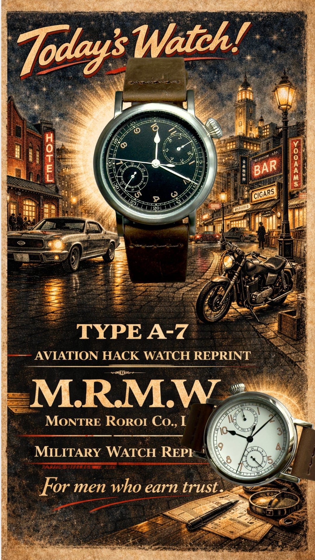 1934年、米陸軍航空隊が採用した「ミリタリーウォッチの聖杯」TYPE A-7が復刻!最大の特徴は、ハンドルを握った状態で見やすい斜め45度の文字盤。現代的な38.5mmサイズと日本製クォーツを採用し、実用性を極めました。創業20周年の「還元爆割」価格で手に入る、ファン必見のラストチャンスです。