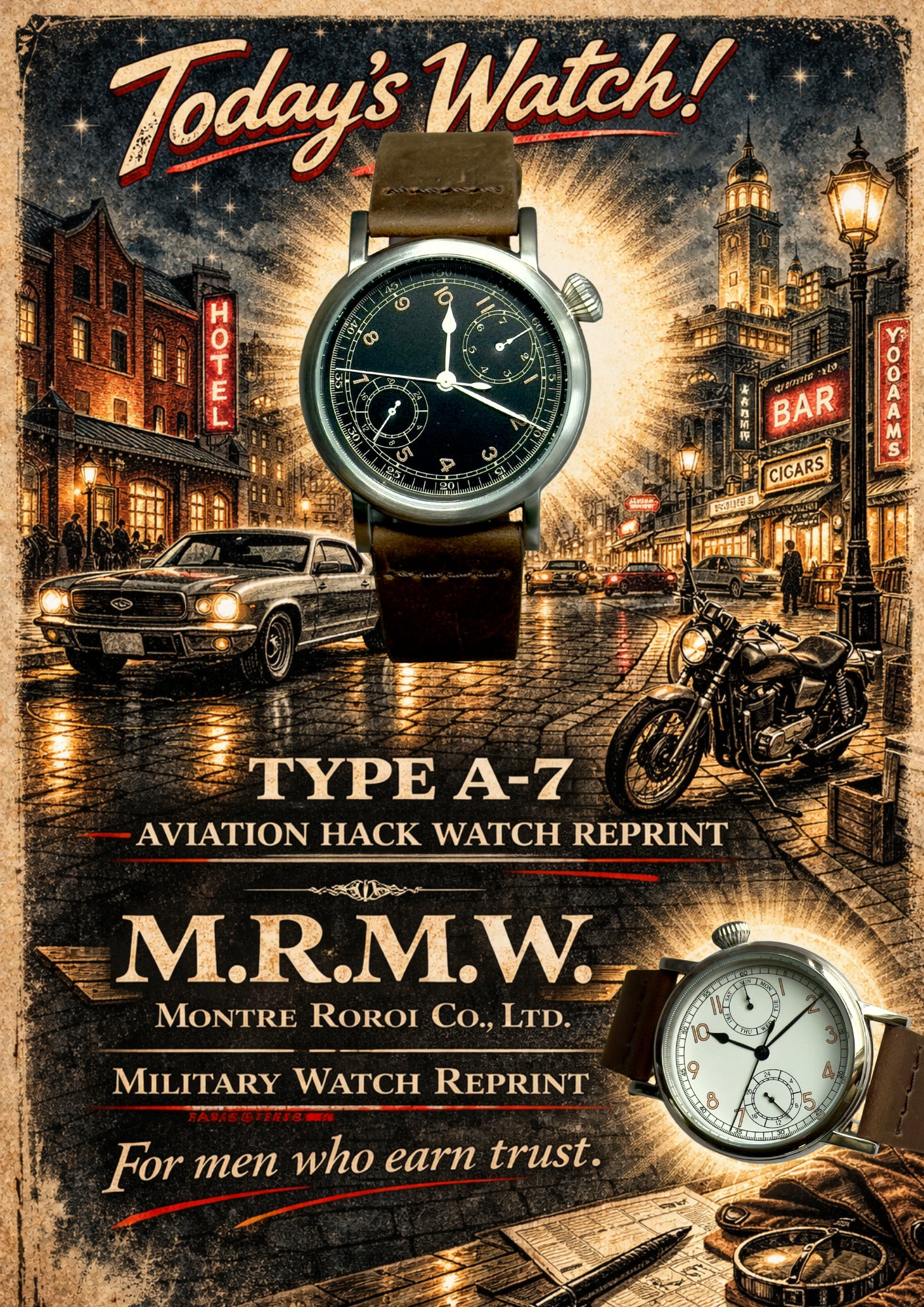 色々な試行で弊社時計ブランドM.R.M.W.とKEYFODを広めてまいりたく。両ブランドは1950年代から70年代のヴィンテージ時計の復刻をテーマにしております。いつまでも愛される時計創りをモットーに制作させていただいております。