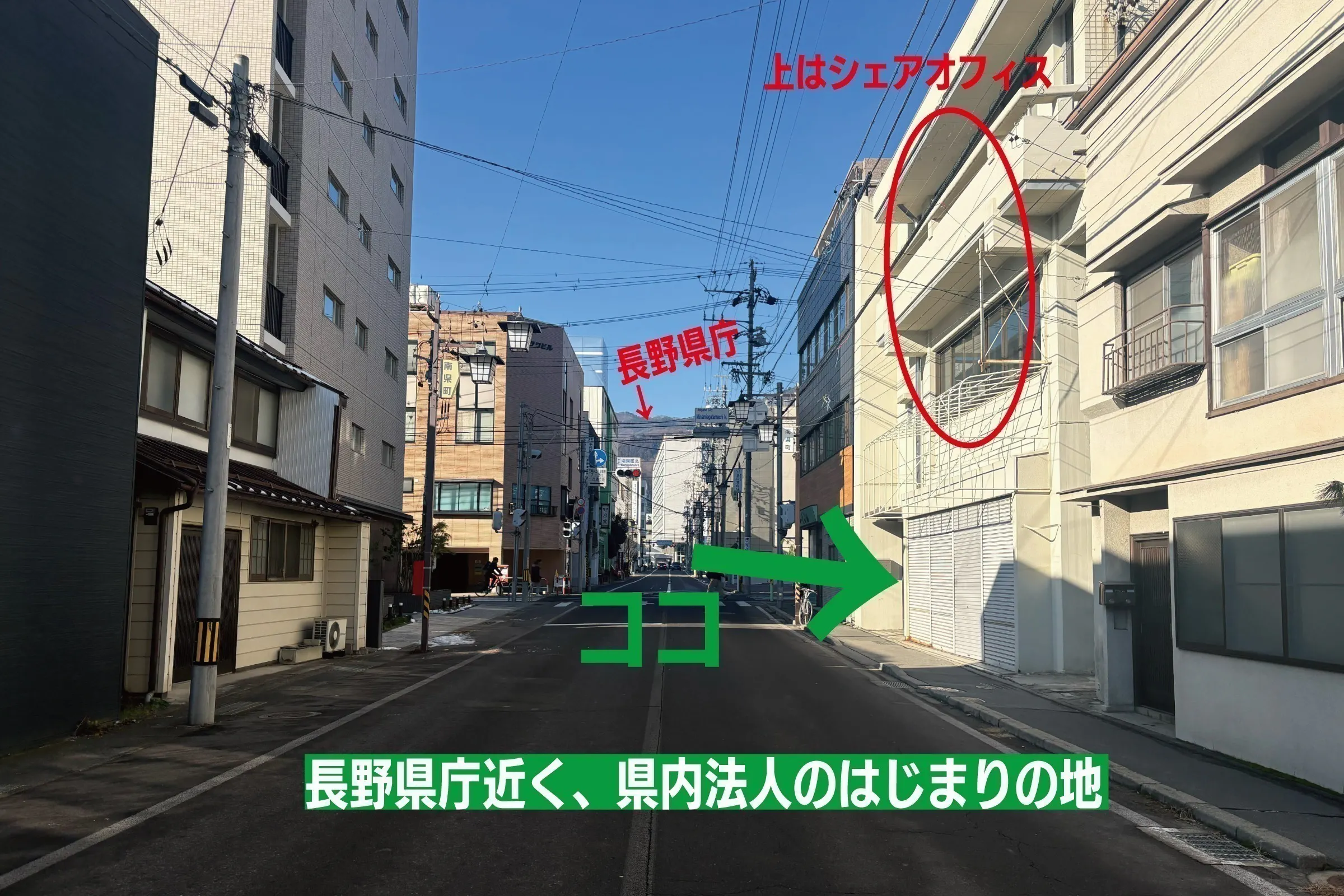 写真向かって右側、シャッターが閉まっている白いビルが今回の拠点「県ビル」