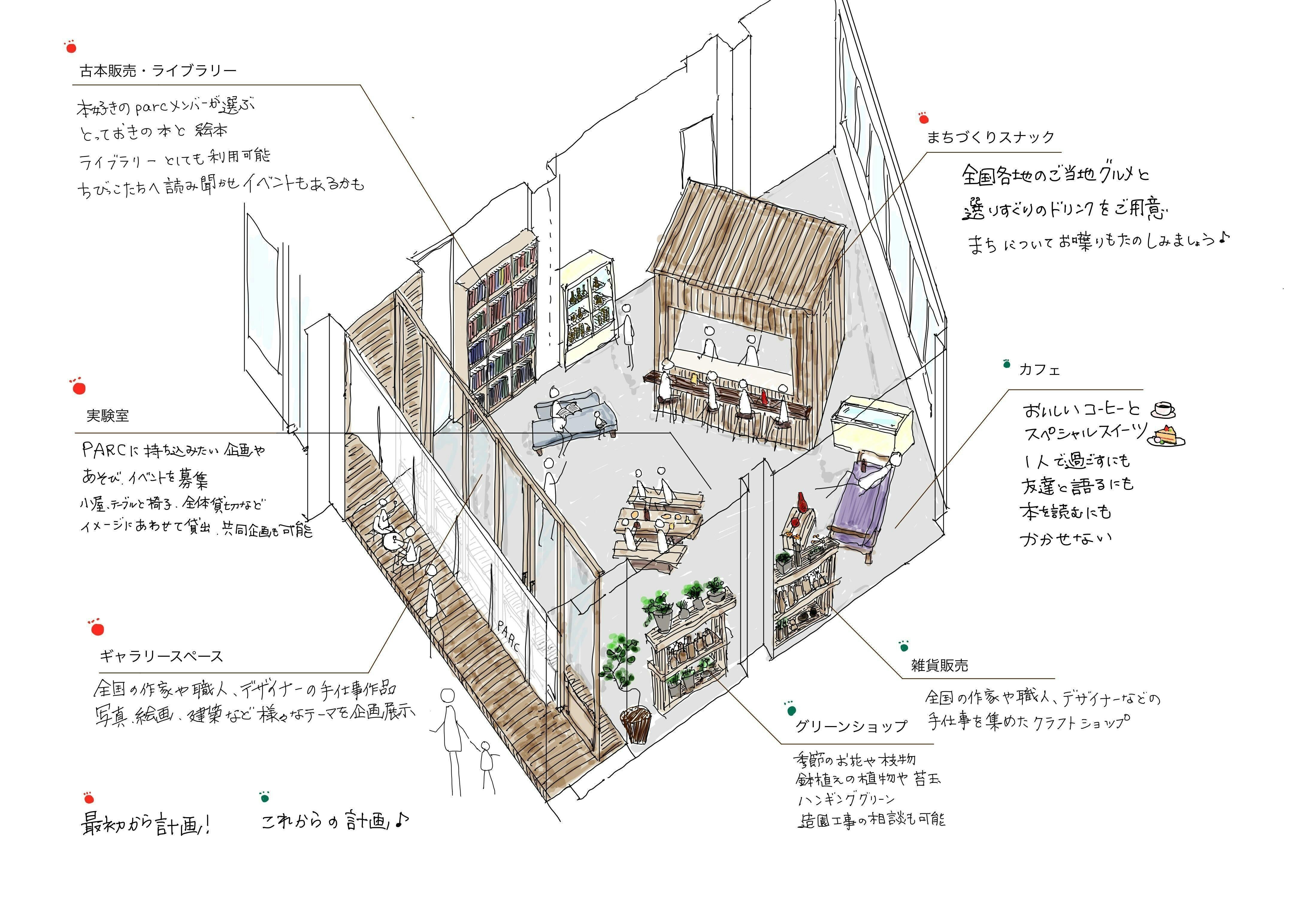 PARCを単に「お店」ではなく「公園みたいな」としているのか。その理由は、PARCをつくるという行為が、民間主導のパブリックな場を、まちの一角に置いてみるという実験だからです。