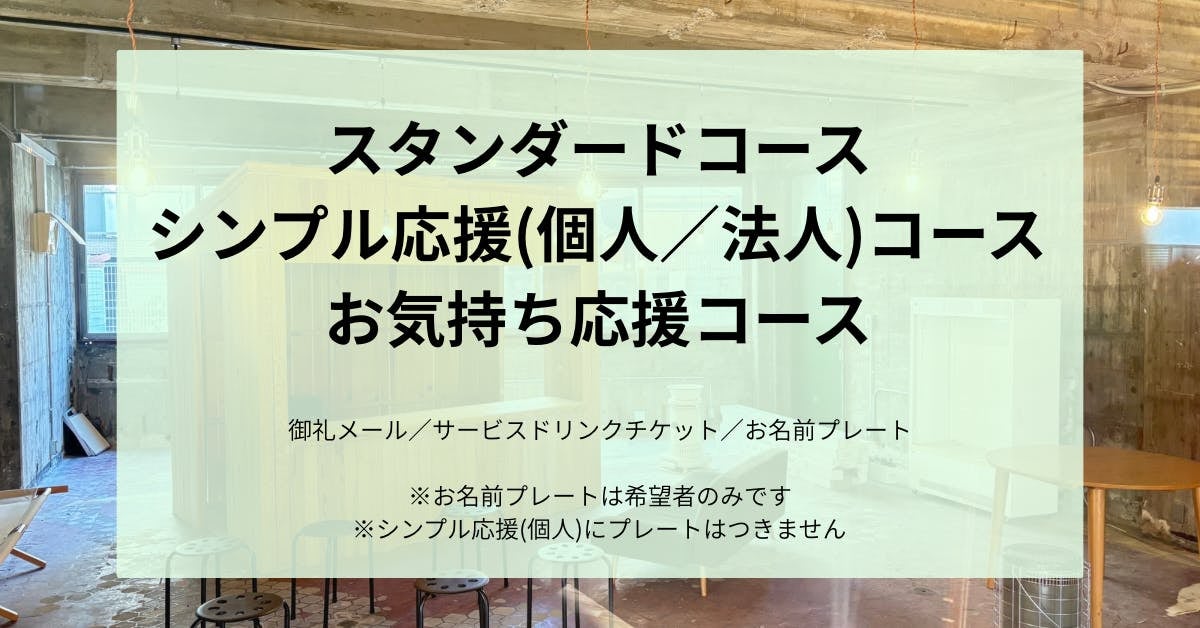 プレオープンから第1期オープンにかけては、本当に「ないものだらけ」のPARC、つまりは関わりしろが満載です。こちらのコースは、どれも今回のクラウドファンディングならではのものばかり。例えば「あのエアコン、わたしが支援しました!」と一緒に場をつくった形跡を残せる内容です。