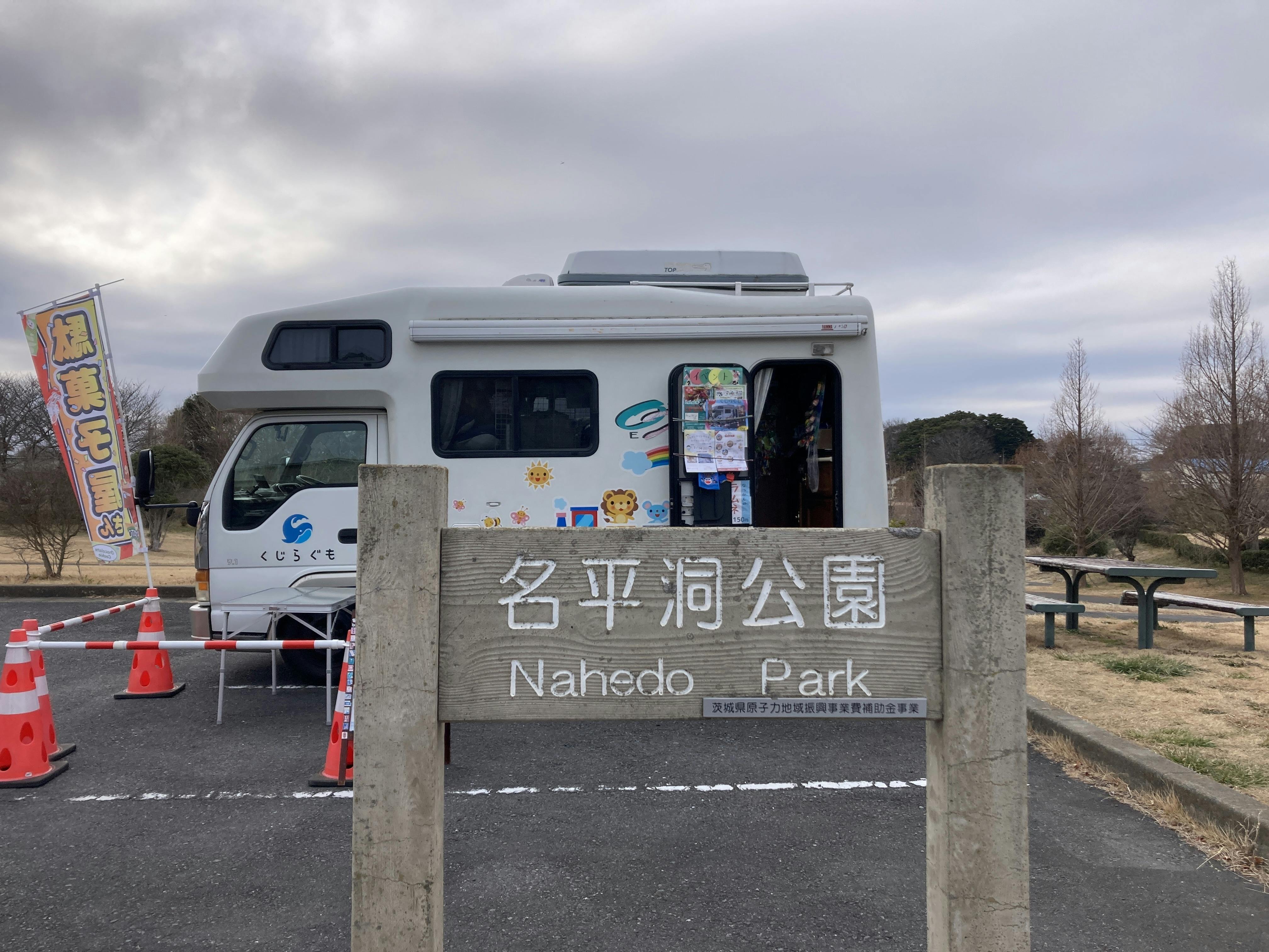 茨城県ひたちなか市内にある『名平洞公園』に,毎月第1・第3月曜日,14:00〜17:00まで出店してます。一面芝生が広がり、子どもたちが鬼ごっこをして走り回ったり,サッカーや野球をしたりする姿があります。ぜひ遊びに来て下さいね。