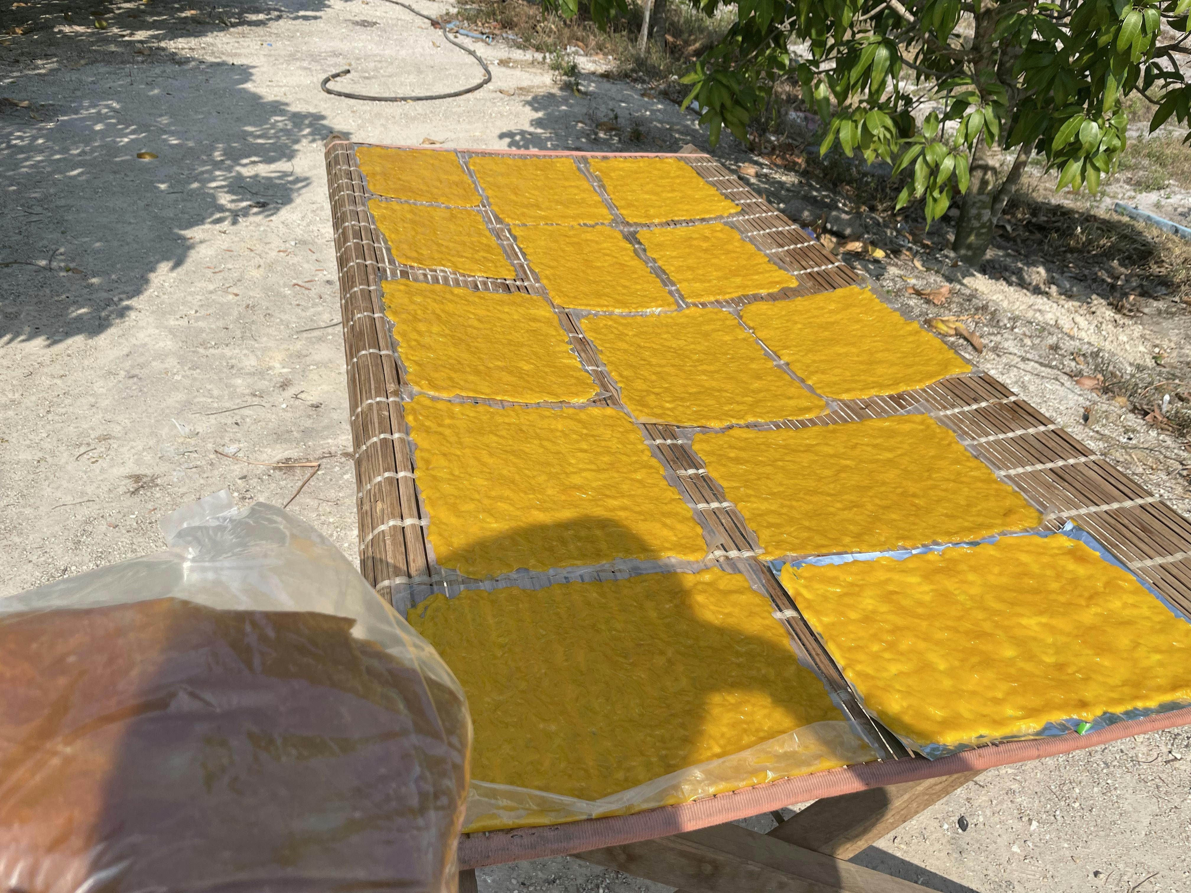 マンゴーの果肉を干して、長期保存できるようジャムのようなものを作っている農家さん