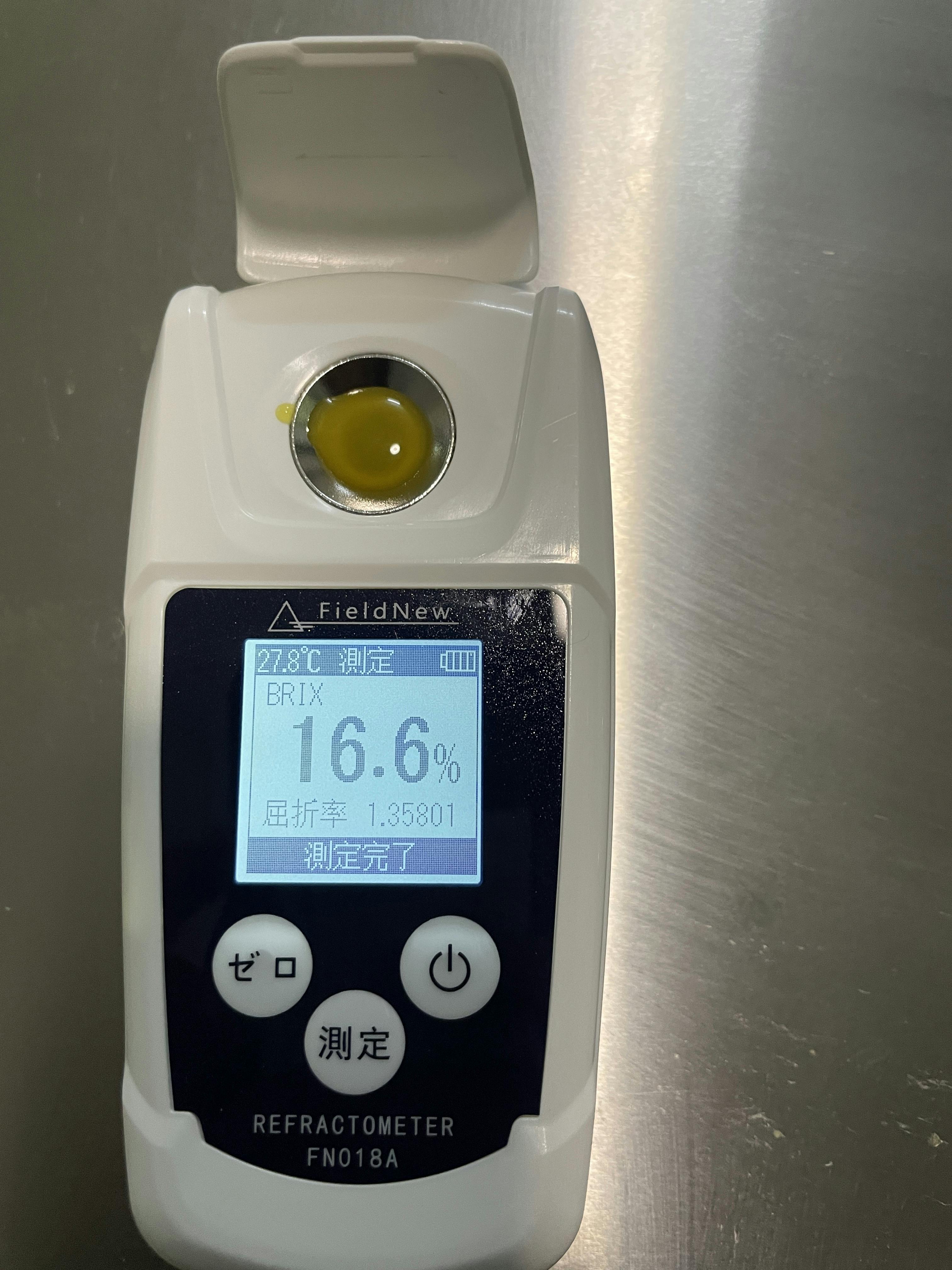 搾汁の際に糖度を測ります。