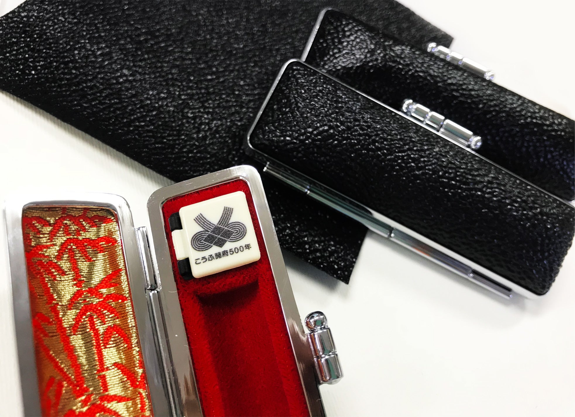 ケースの朱肉蓋には、こうふ開府500年記念ロゴをいれさせていただきました。