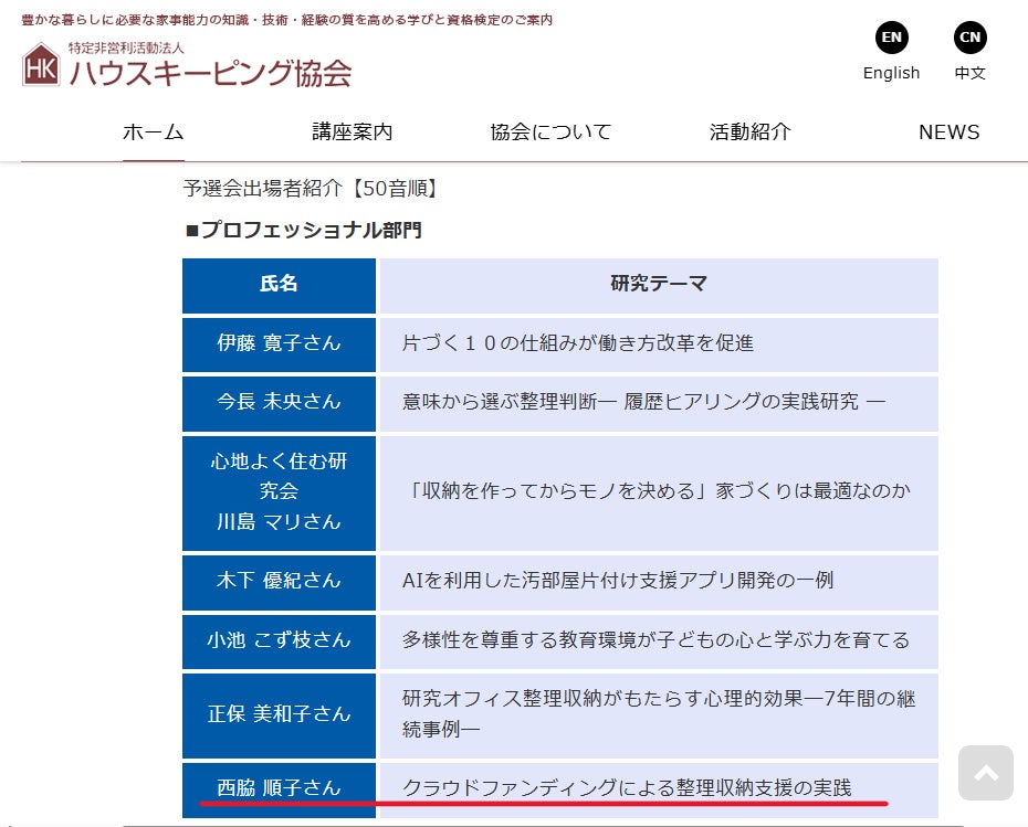 そしてその取り組みが、整理収納アドバイザーの専門的な審査の場でも、