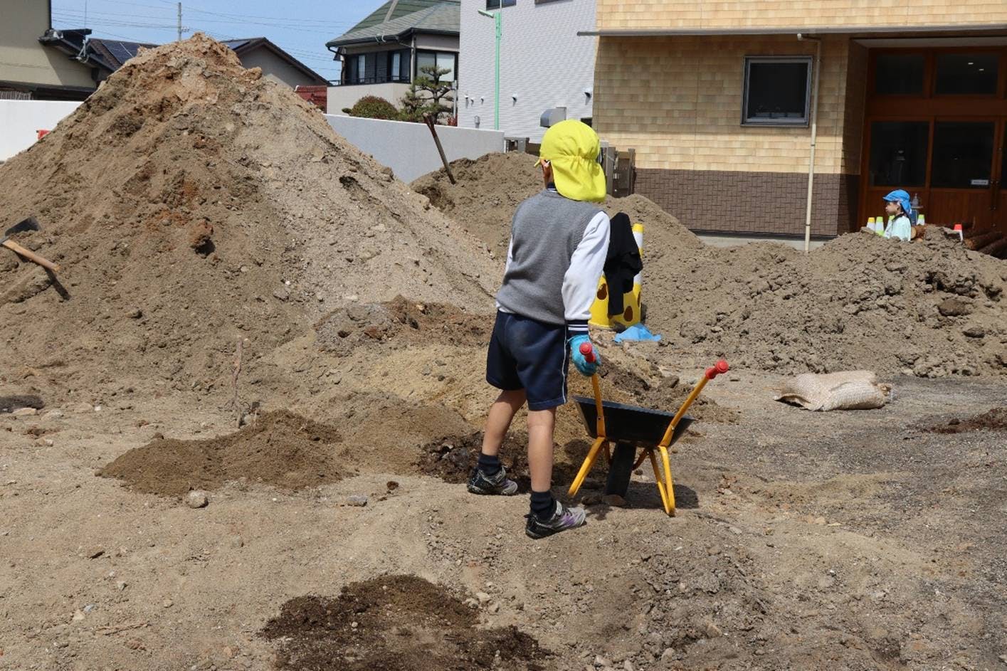 (土壌改良と同時に子どもが遊べる築山も作っていきます)