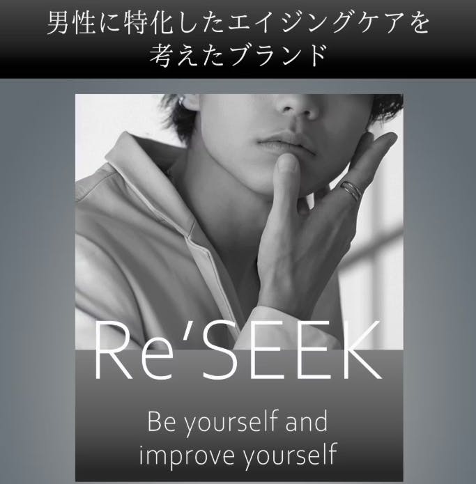 男性に特化したエイジングケア(※年齢に応じたケア)を考えたブランド「Re'SEEK」からの、プラチナナノコロイド(※整肌成分として)効果で、肌を整えることが期待できる、「オールインワン美容液」のチャレンジです。