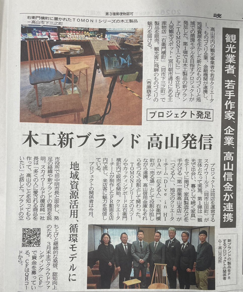 岐阜新聞 飛騨版1面に掲載|TOMONIプロジェクト始動