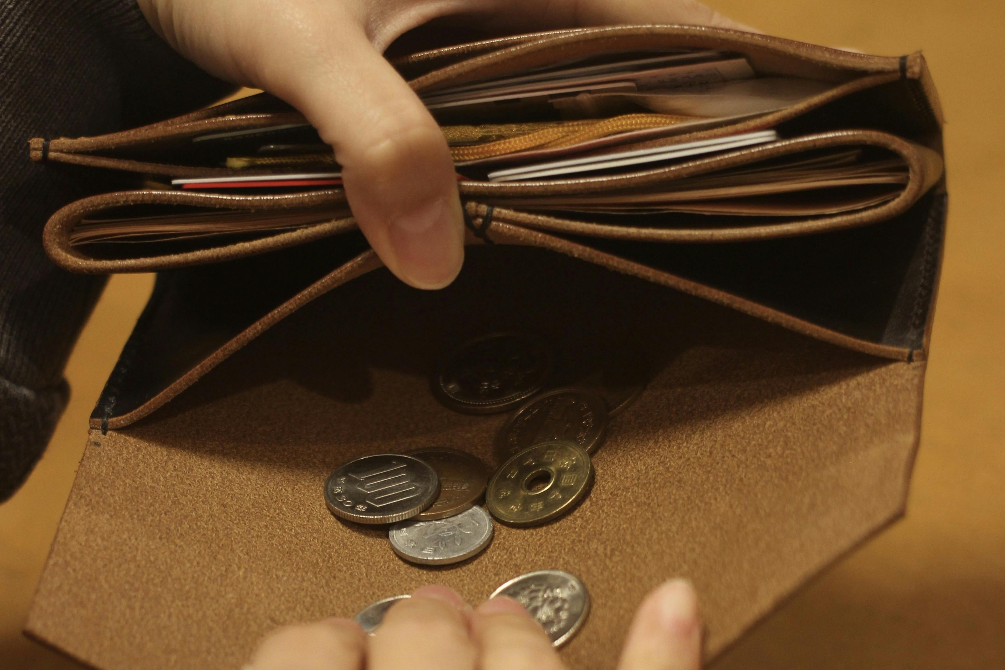 コインを出すためにわざわざジッパーを開けたり、お札と小銭をしまうのにいちいち持ち替えたり。