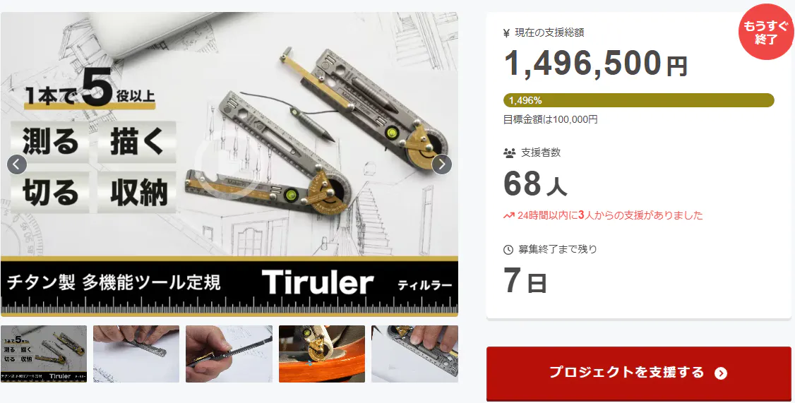 2026/03/24 12:00ご支援者様、デザイナーもエンジニアも。測る・描く・切るを極める多機能ツール定規にご興味をお持ちいただきありがとうございます。お陰様で、開始から支援 総額140万円達成することができました!終了までわずか7日となります。プロジェクト終了後、「デザイナーもエンジニアも。測る・描く・切るを極める多機能ツール定規」をMachi-Ya特別価格で入手することはできなくなりますので、ご支援がまだの方、追加支援をご検討の方はお急ぎくださいますようお願い申し上げます。ご興味のある方、ぜひ支援お願い致します。https://camp-fire.jp/projects/911112/viewBrightチームは、当プロジェクトをもっと多くの方に知っていただきたいと考えております。よかったら、FacebookやTwitter等のSNSでのシェア・拡散をお願い致します。#brightdiyどうぞよろしくお願い致します。Brightチーム もっと見る