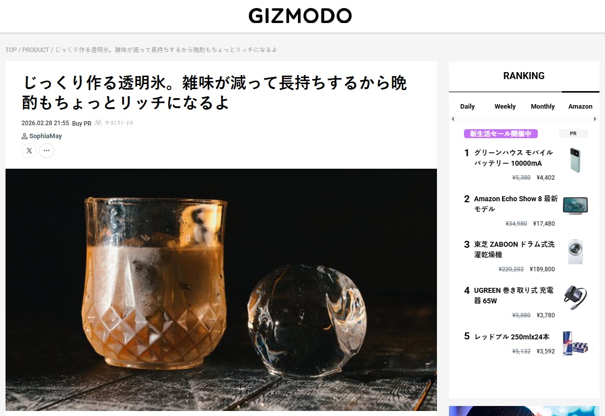 2月28日、GIZMODOで「REAL ICE」を紹介して頂きました。