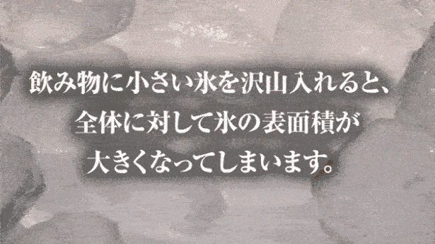 REAL ICEは、これまでの氷の概念を超える“透明度・品質・美しさ”を追求しました。