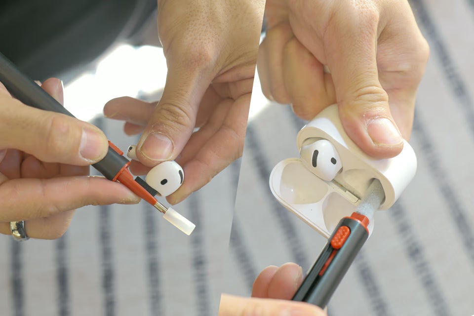 ピンセットなども便利ですが、筆者的に嬉しかったのが写真のイヤホンクリーニングツール。気がつくと耳垢などで汚れているものの、わざわざ単体で専用ツールを買うほどでもなかったので助かりました。〉