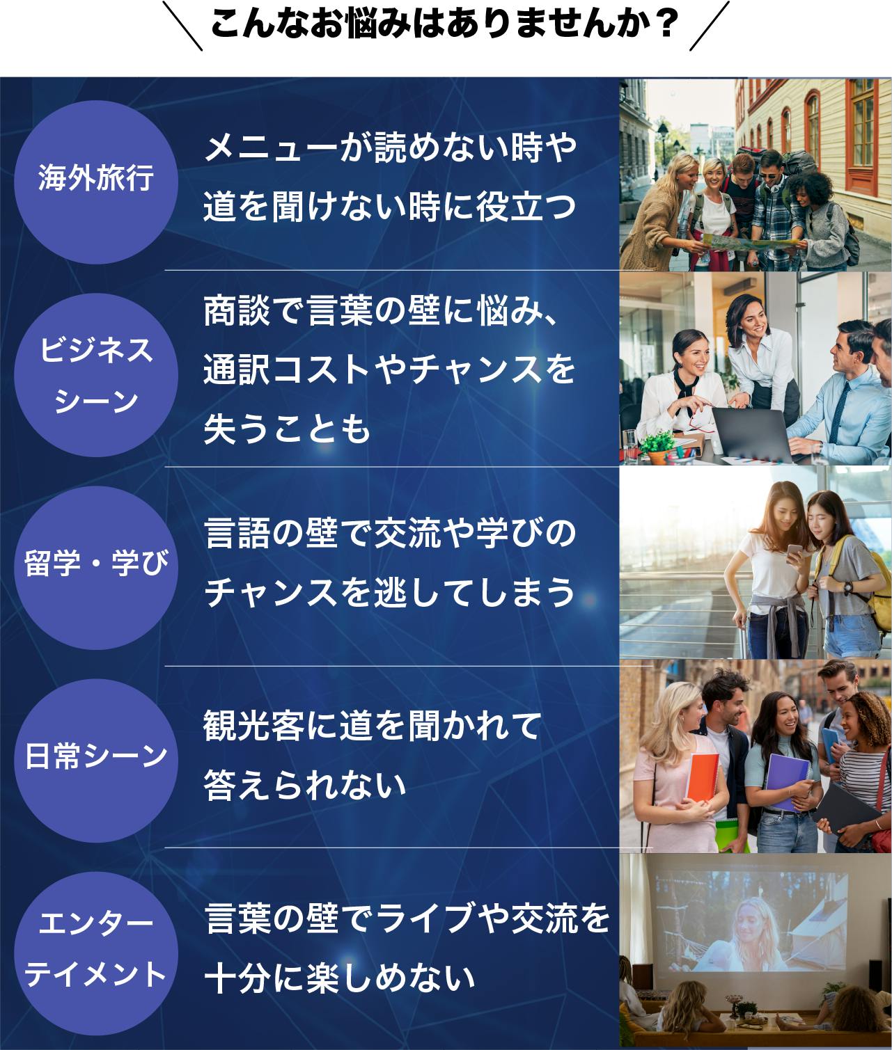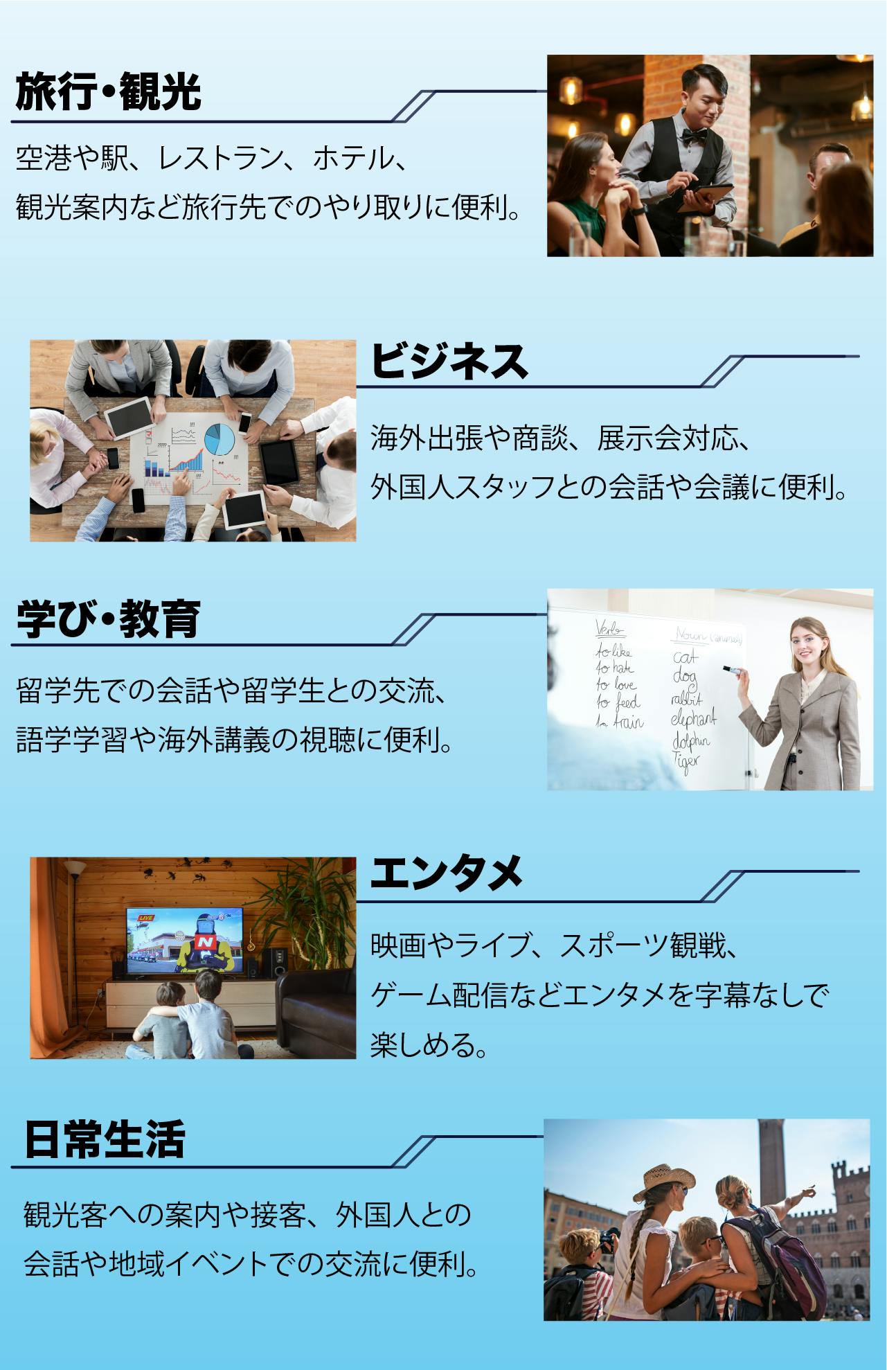 まるで専属通訳がそばにいるように、誰とでもスムーズに会話できる新時代のグローバルコミュニケーションを実現!