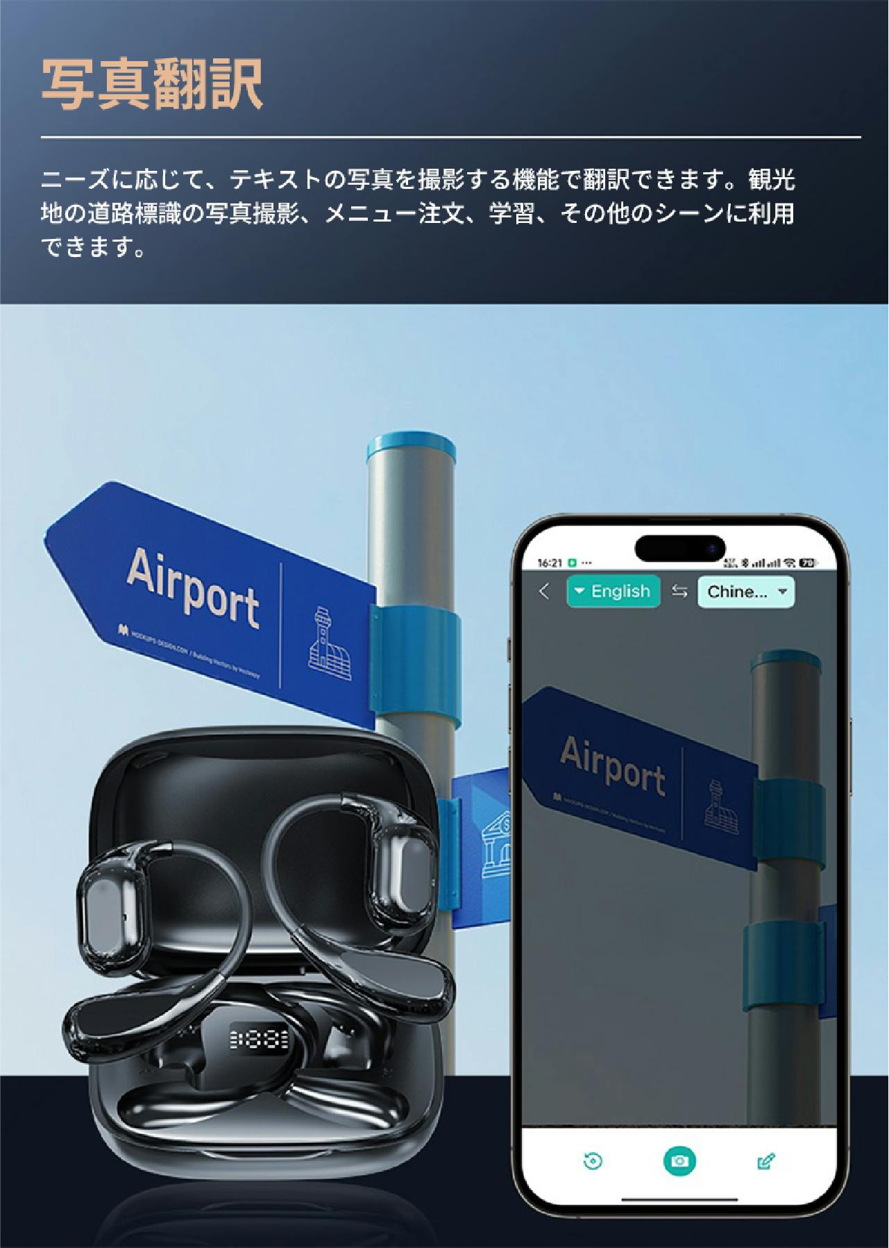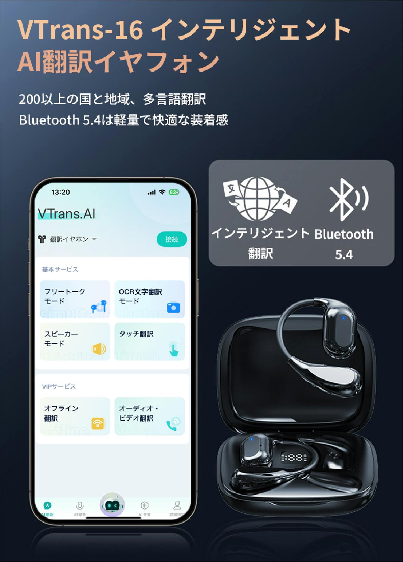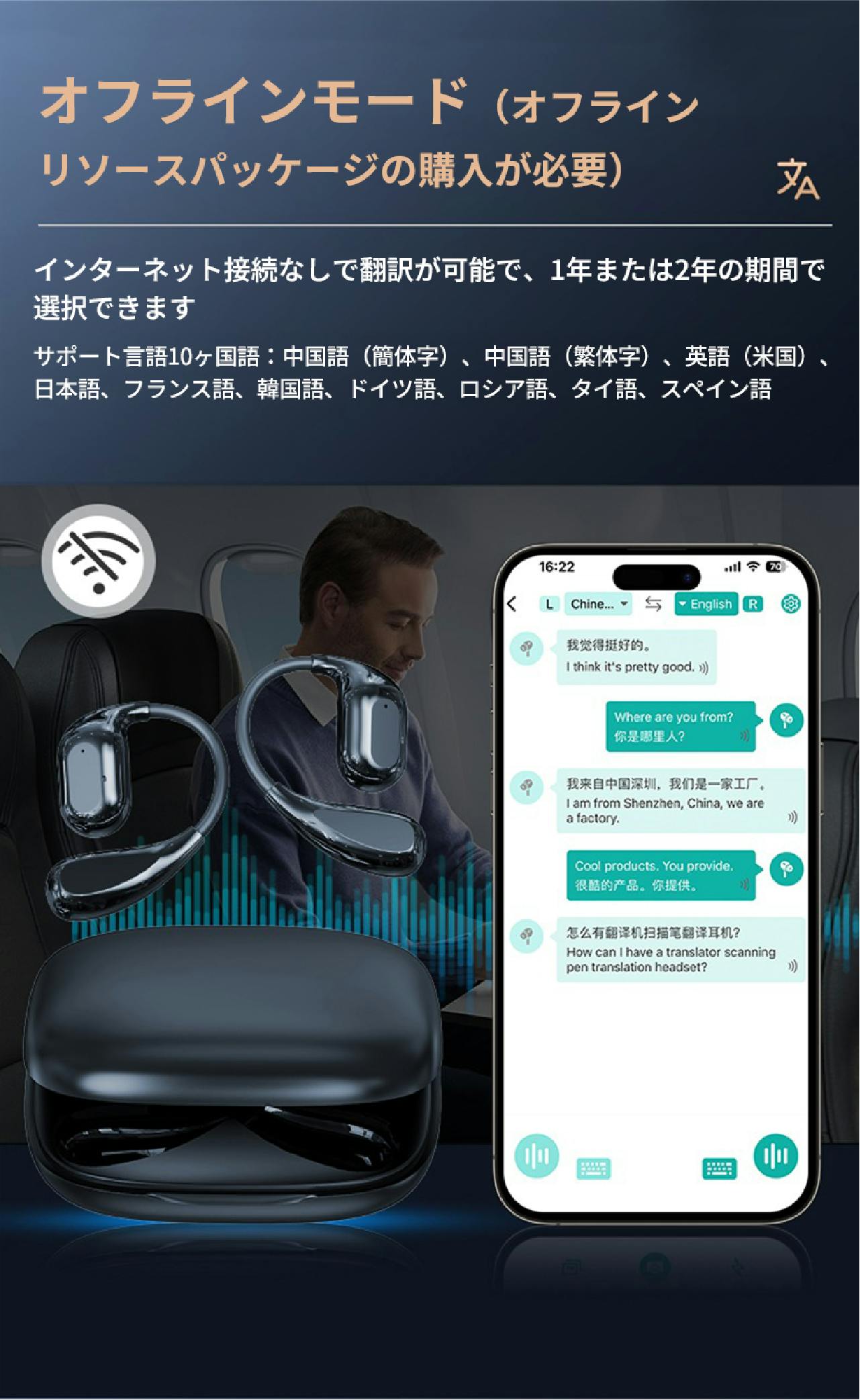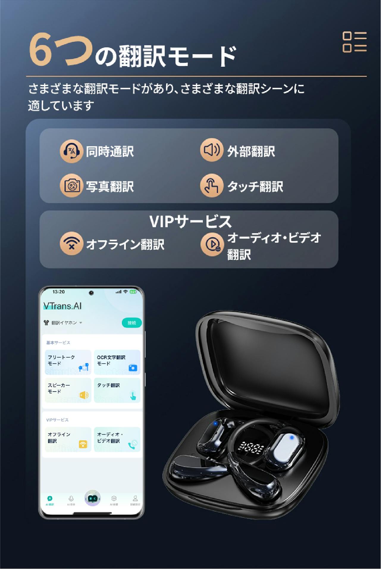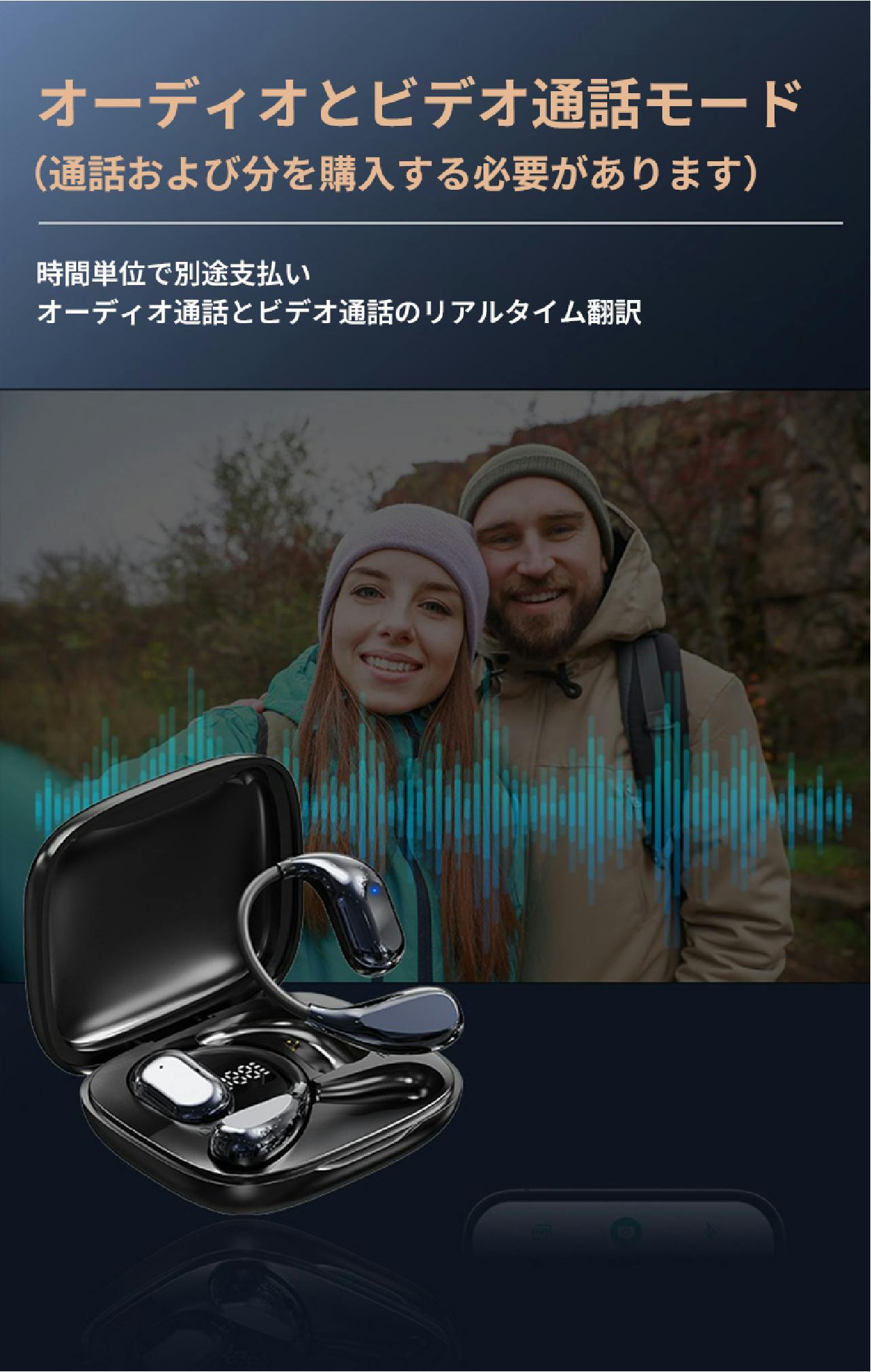 複数の翻訳モードを搭載し、旅行からビジネス、学習まで使い分けできる実用的な 翻訳イヤホンです。