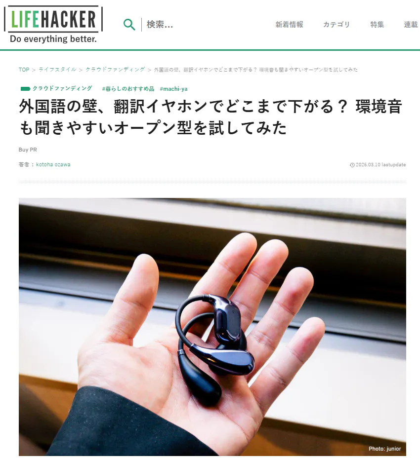 2026/03/14 21:00皆様、こんばんは!Bright DIYチームです。3月10日、Lifehackerで「VORMOR Vtrans-16」を紹介して頂きました。話題:外国語の壁、翻訳イヤホンでどこまで下がる? 環境音も聞きやすいオープン型を試してみた興味がある方、是非下記のリンクからアクセスしてみてください。https://www.lifehacker.jp/article/machi-ya-v16-review-911118/【レビューの一部抜粋】〈オープン型ならではの開放感翻訳ガジェットにはアプリだけで動くものから独立したデバイスまで幅広くありますが、「V16 Earphone」はオープン型イヤホンタイプ。充電ケースでは残量も見れるのが便利。イヤホン単体で4時間ほど使え、ケースでの充電も含めると24時間ほど使える計算。装着感はけっこう快適。耳が塞がれている感覚はなく、カナル型やインイヤー型が苦手な人にはいいですね。会話や動画をサクッと翻感ホテルのチェックインを想定してテストしたところ、音声読み上げツールで再生した英語はほとんど正確に聞き取られ、日本語に翻訳されました。 一部にやや不自然な訳もありましたが、内容の意図を理解するには十分な精度でした。 また、翻訳表示には少しタイムラグがあるため、会話のターンを意識して使うとよりスムーズに利用できます。〉ご興味のある方はこの機会をお見逃しなく!https://camp-fire.jp/projects/911118/view3月15日まで販売期間は続きますので、ぜひSNSでのシェアや身近な方にもおすすめしていただけると嬉しく思います。#vtrans16 #brightdiyどうぞよろしくお願い致します。BRIGHTチーム もっと見る【早期リターン・配送手配完了のお知らせ】