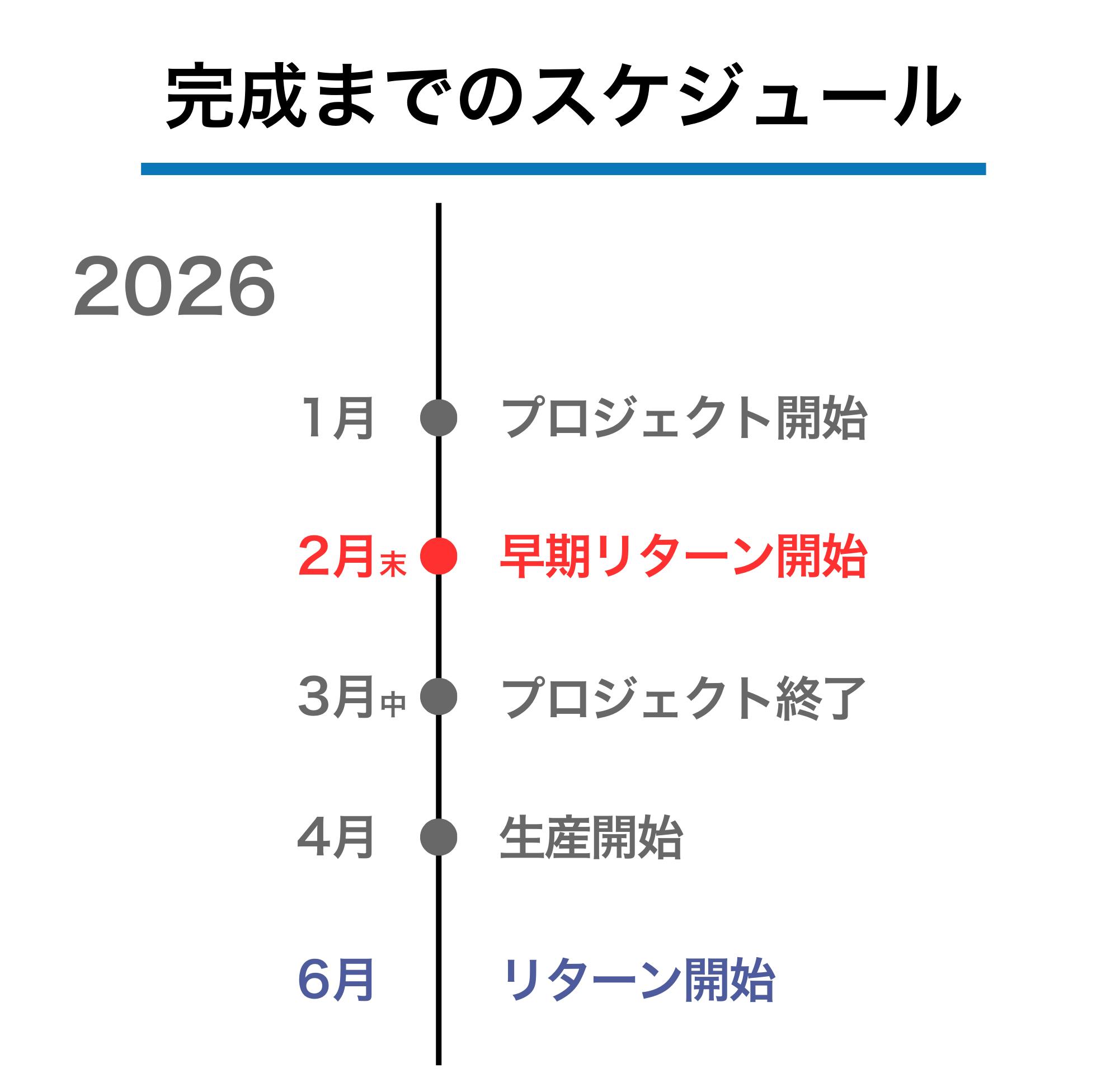 ※本文中に記載させていただいたスケジュールは、あくまでプロジェクト公開時点の予定です。クラウドファンディングを経て輸入を行う性質上、配送遅延のおそれがございます。