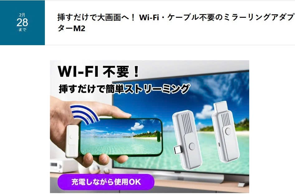 話題:挿すだけで大画面へ! Wi-Fi・ケーブル不要のミラーリングアダプターM2