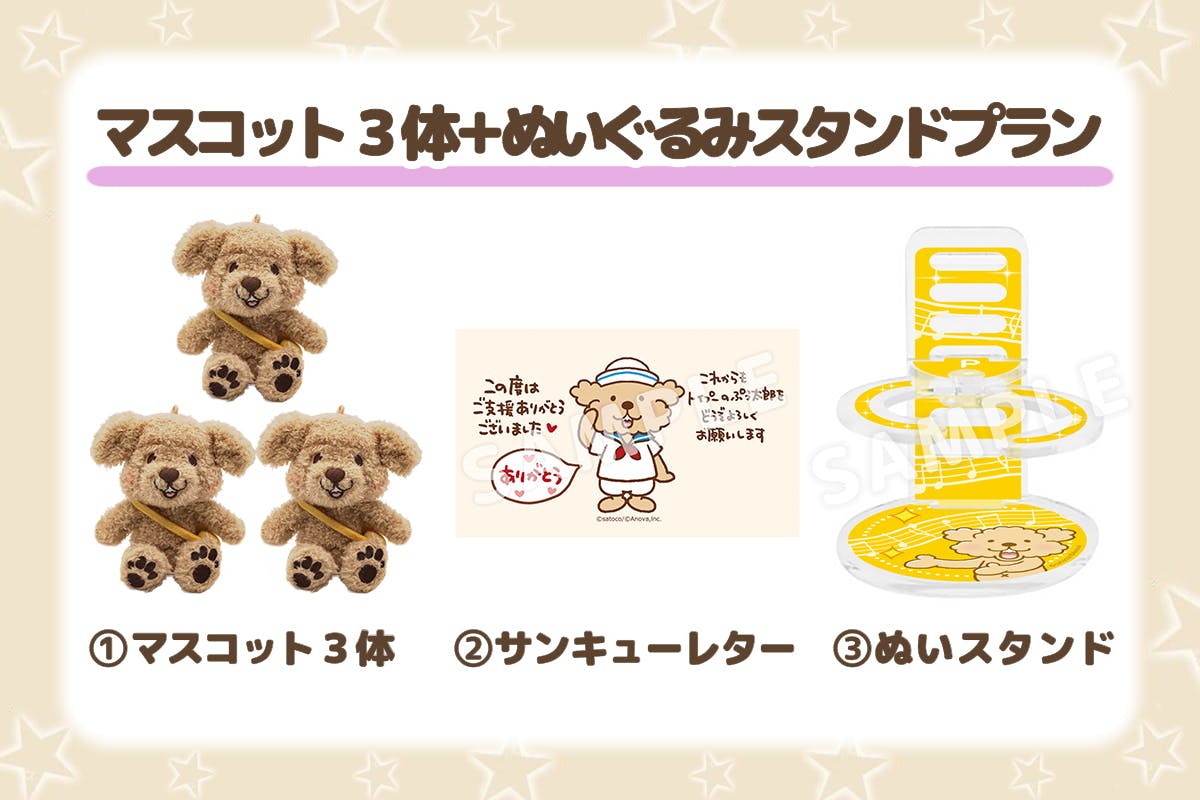 マスコット3体、サンキューレター、ぬいスタンドのプラン♪