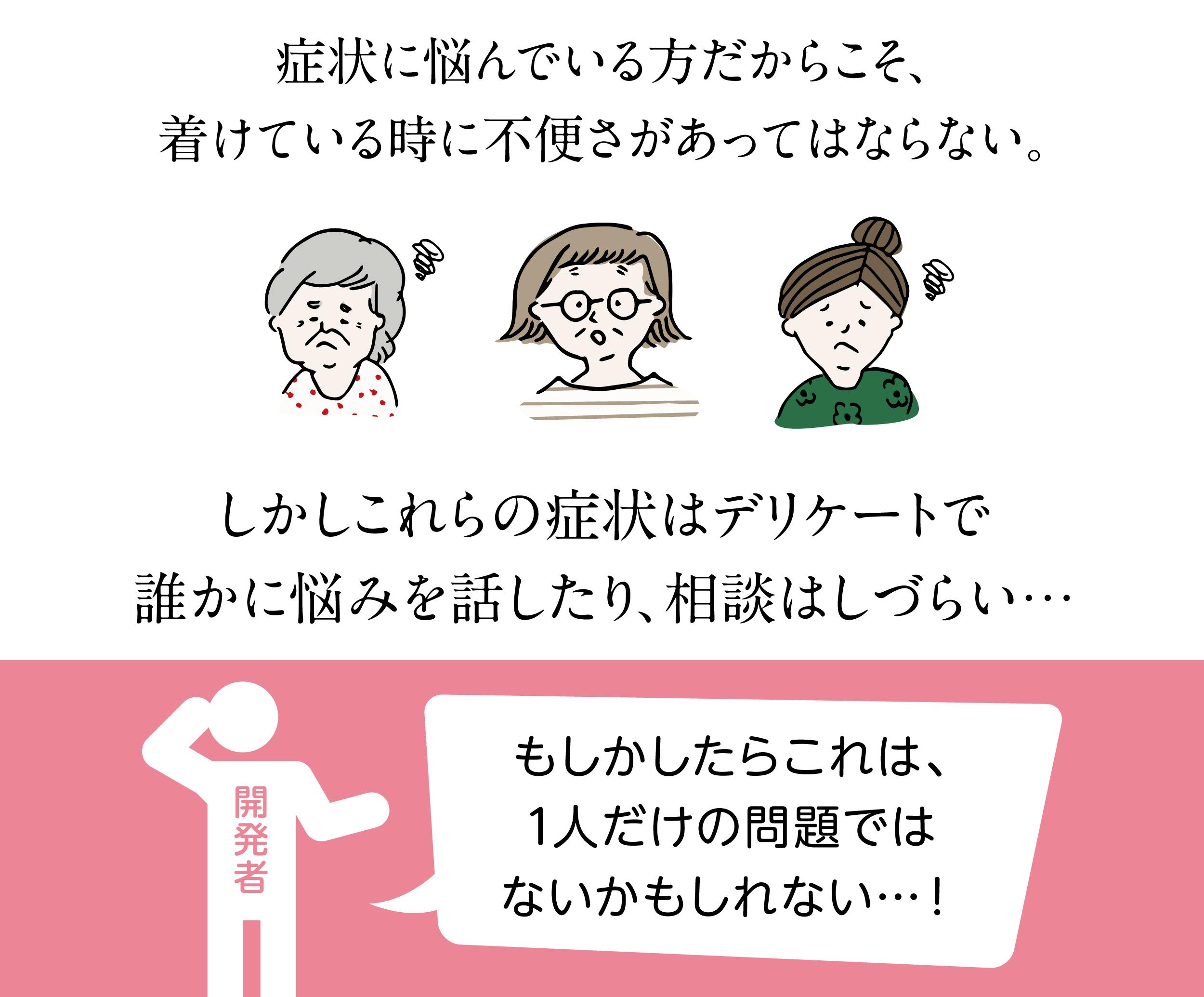 本プロジェクトは、臓器脱の症状を抱える女性にとっての日常生活の不便を減らし、外出や活動に前向きになれるための製品を広めることを目的としています。