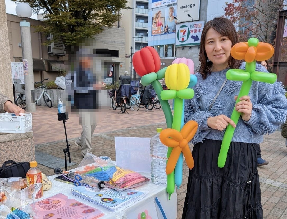 次女を亡くした後、私自身もひきこもりを経験しました。多くの人に支えられ、助けられ、たくさんの方の優しさに触れ、悲しみのドン底から抜け出すことができました。導かれるように趣味で自分の子どもたちが小さい頃に作っていたバルーンアートでのボランティア活動をするようになり2年弱、地域のお祭りやイベント、病院祭や福祉施設などでバルーンアートのボランティア活動をしてきました。最近では放課後等デイサービス様からのご依頼もいただき、また葛飾区役所内のくらしのまるごと相談窓口様とも協力体制を取り、2026年3月にはバルーン講師として、ひきこもりの方を対象にした「かつROOM」にも参加させていただきます。