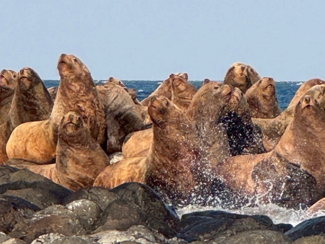 さらにトドたちが休憩する「弁天島」には、たくさんの個体が集まります!