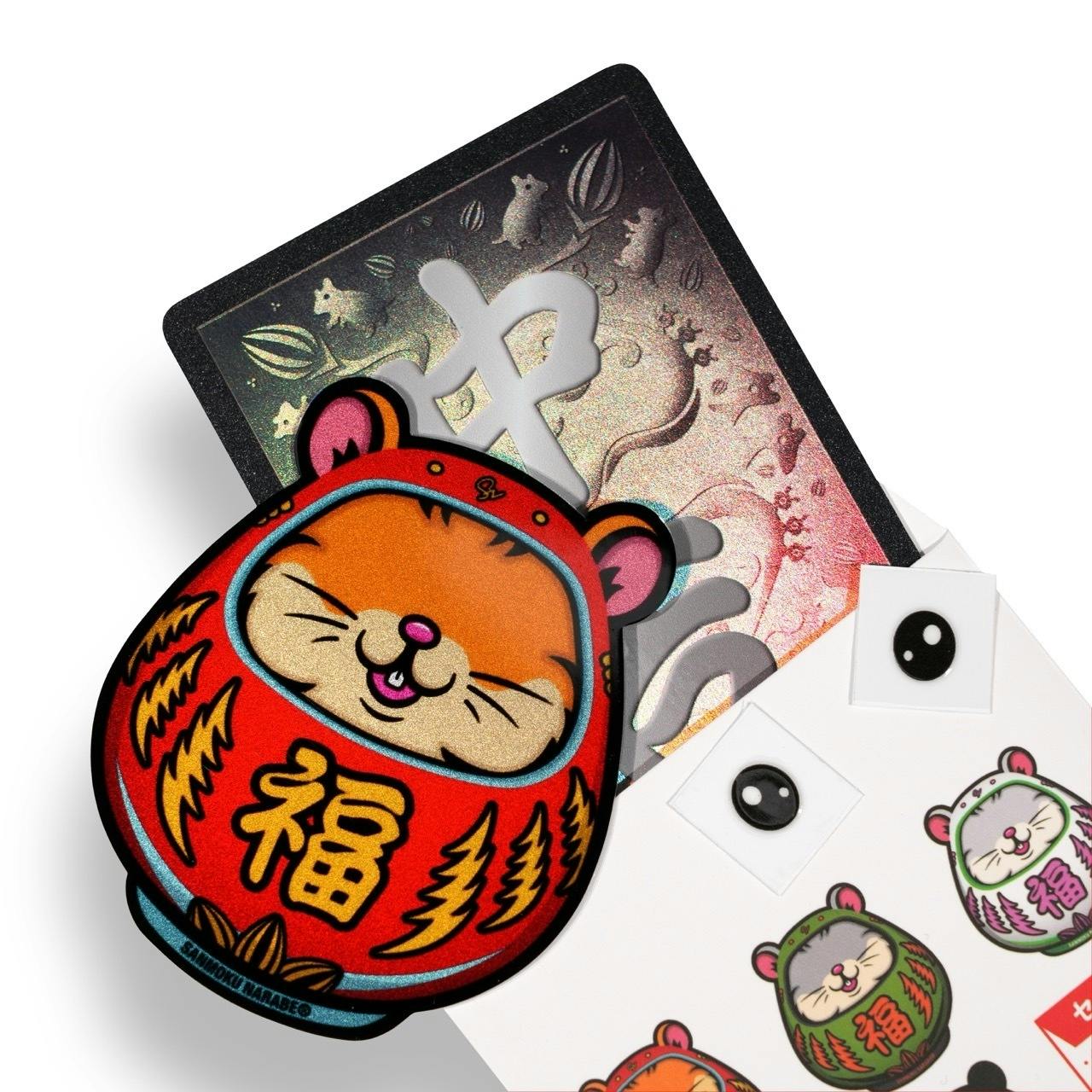 ・【願いの種 vol.1】パック 5パック入り(ステッカー・目入れシール・おみくじカード 各5セット分)