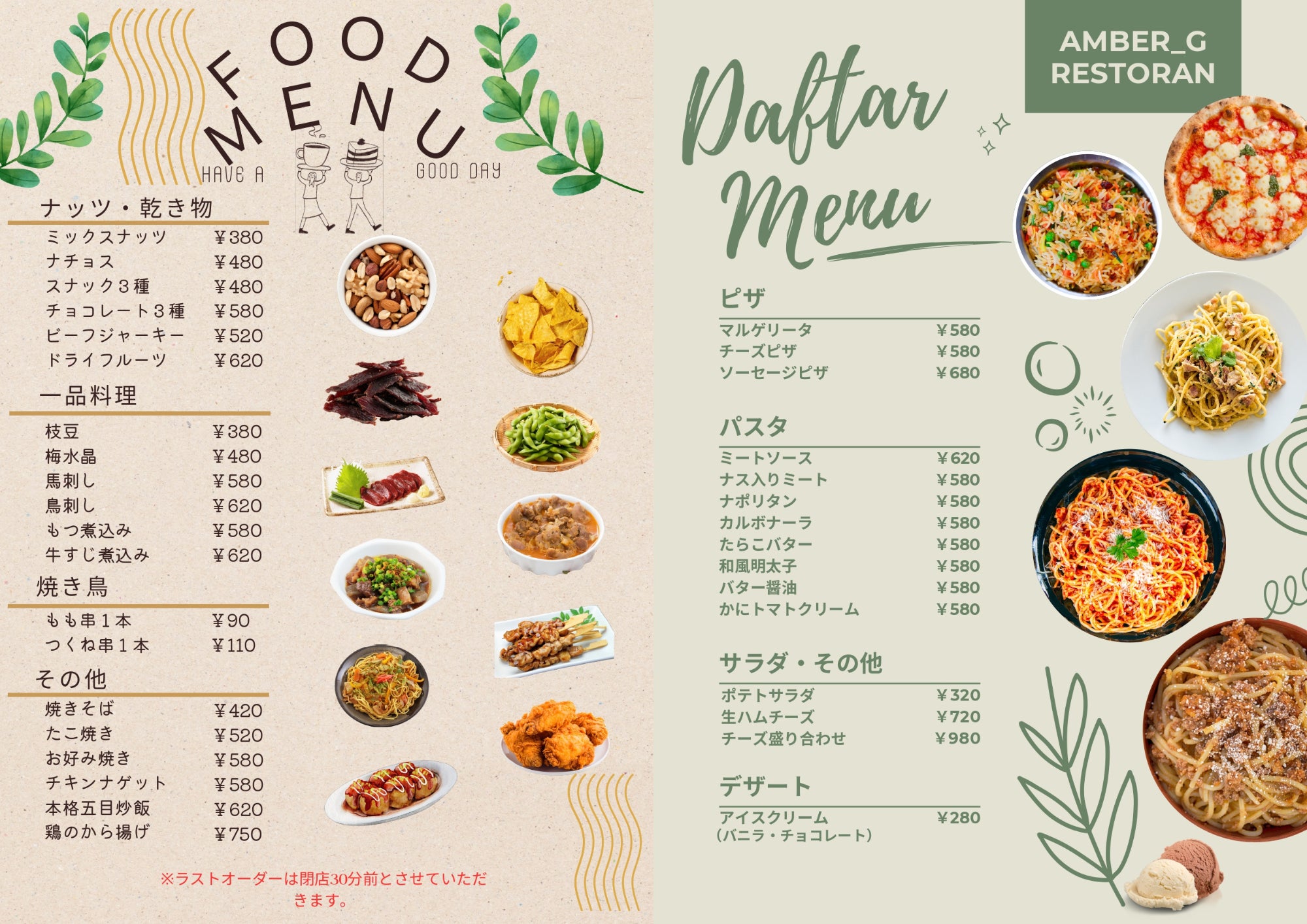 メニューを作成いたしました