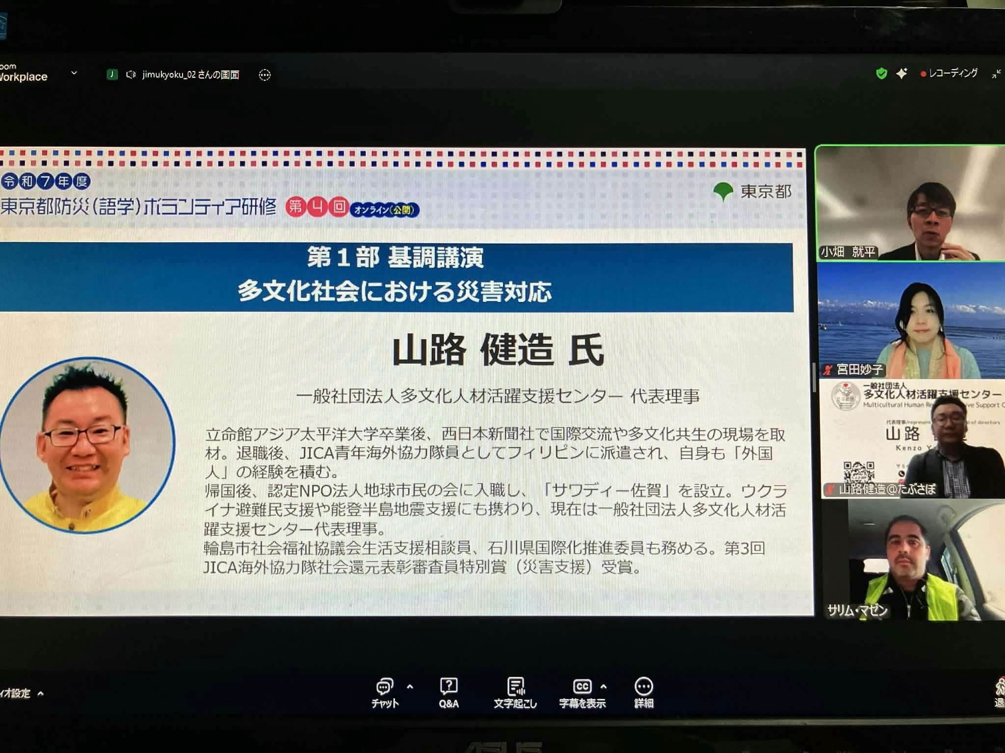 14日は、輪島市のベトナム人技能実習生と一緒に、東京都主催の防災(語学)ボランティア研修にオンライン登壇しました。