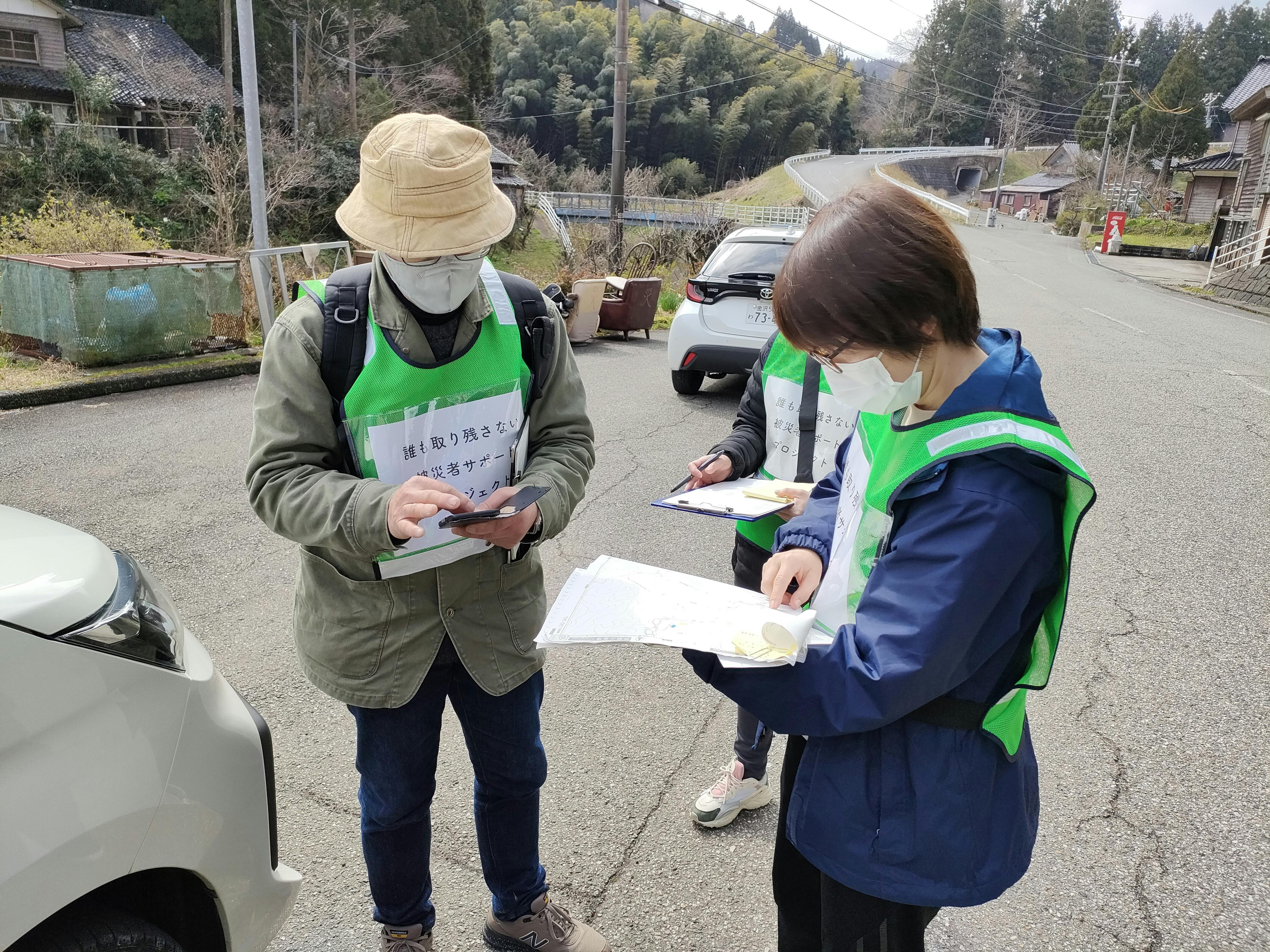 1週間だけの予定でしたが、予想をはるかに超えた被災状況に、とても1週間では九州に帰ることにはなりませんでした。ダイバーシティ研究所の担当は輪島市の全戸調査。当時、約1万1千世帯の家がありました。そこを、地元のケアマネジャーや専門支援相談員、全国から集まった訪問スタッフなど延べ1300人超の受け入れを実施して、1軒1軒を訪問。2024年4~6月で、空き家も含めて1万2千軒超を尋ね、全戸訪問を達成することができたのです。