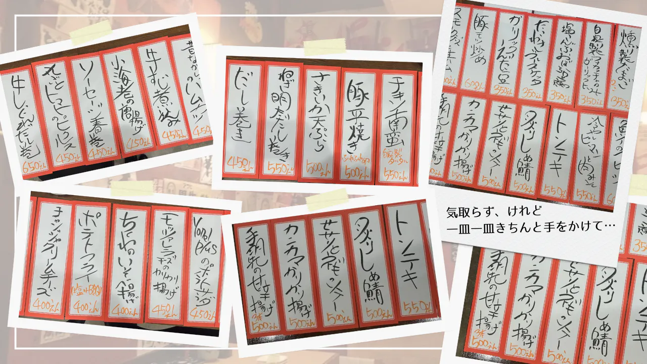 派手な名前も、流行りの演出もありません――けれど、イタリアンとフレンチで培った技術と、居酒屋の懐の深さを、さりげなく、確かに詰め込んでいます。
