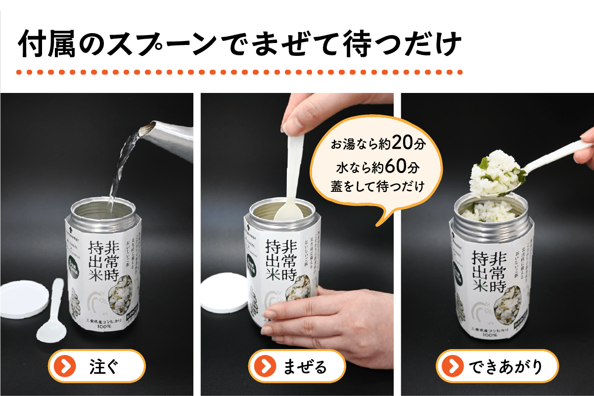 熱湯またはお水を加えるだけでおいしいごはんのできあがり