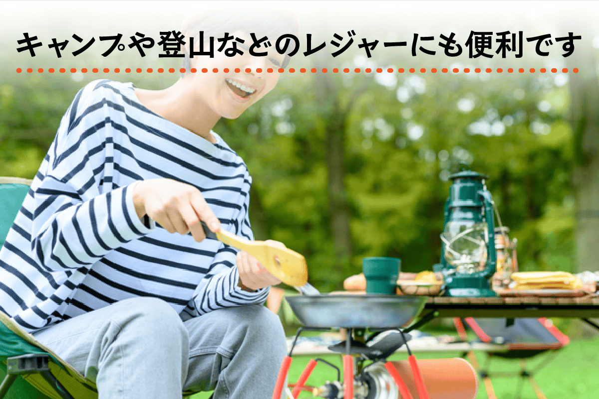 キャンプや登山など屋外のレジャーにもご利用いただけます。