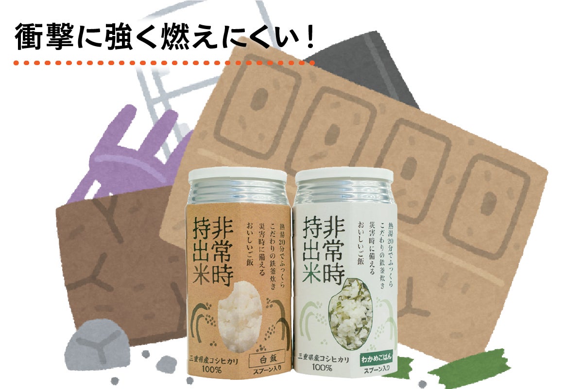そこで生まれたのが「非常時持出米」「非常時持出米(わかめごはん)」