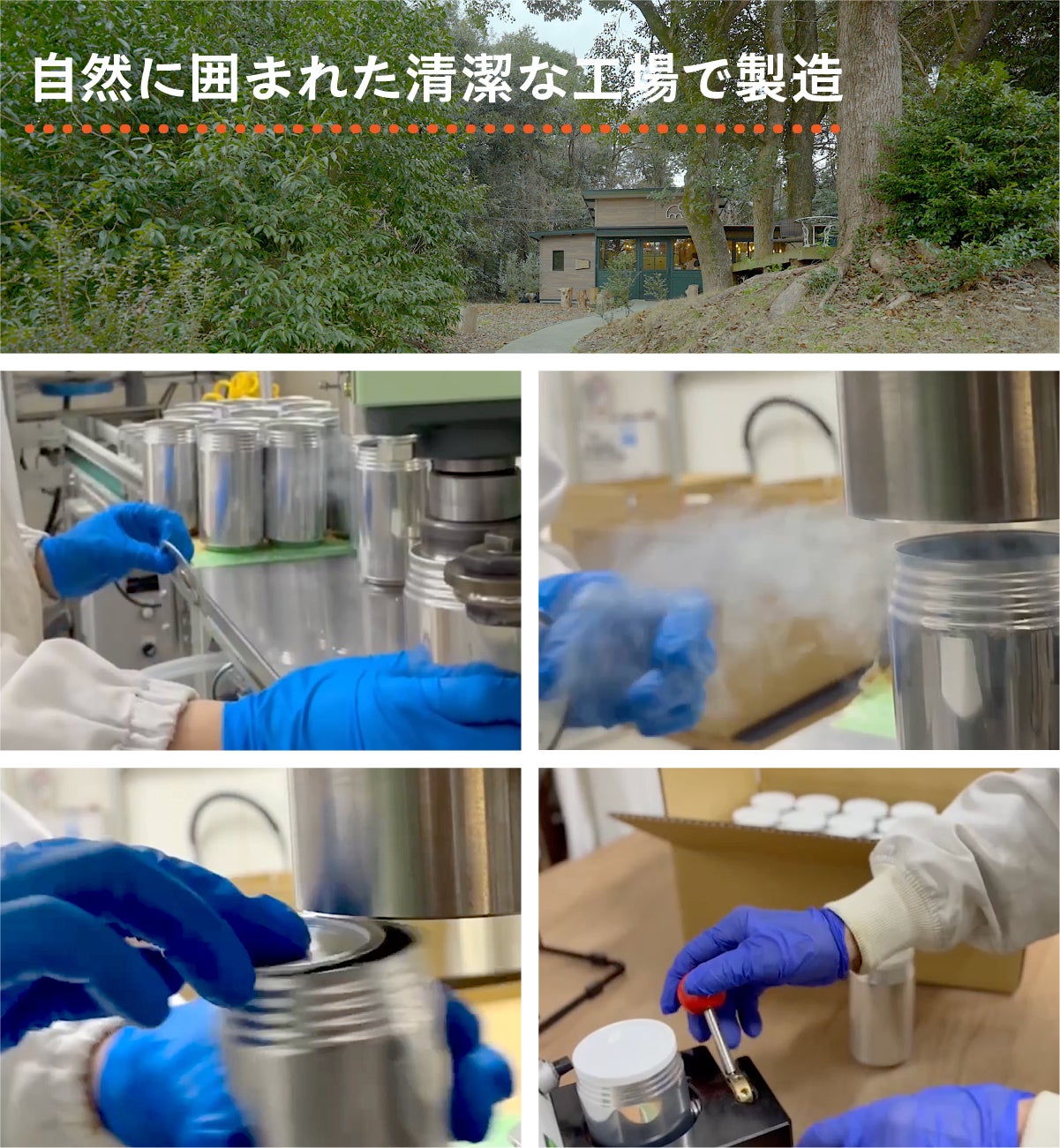 炊飯した米を急速乾燥させることで、炊きたての風味と消化しやすい構造(α化)を維持した、保存食に最適なアルファ化米にしています。清潔な工場で丁寧に製造されており、窒素充填方式(特殊無酸素充填法/特許出願中)を採用しています。また、あらゆる場面を想定した耐久テストも実施されています。