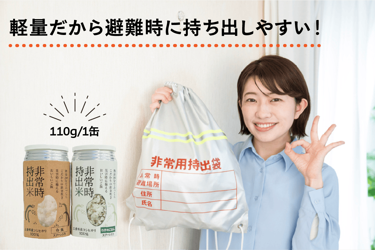 JAみえきたは、地域の農業、ひいては“食”を支えるものでありたいと日々活動しています。昨今の頻発する自然災害等から防災への意識が高まる中で、備蓄食料はご準備されている方も多いと思いますが、自分の口に合うものが見つからないというお声もたくさん聴きました。そんな中で「非常時持出米」は防災食として、おかげさまで選ばれ続けてきました。