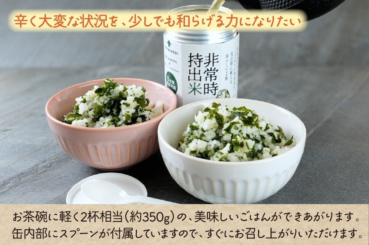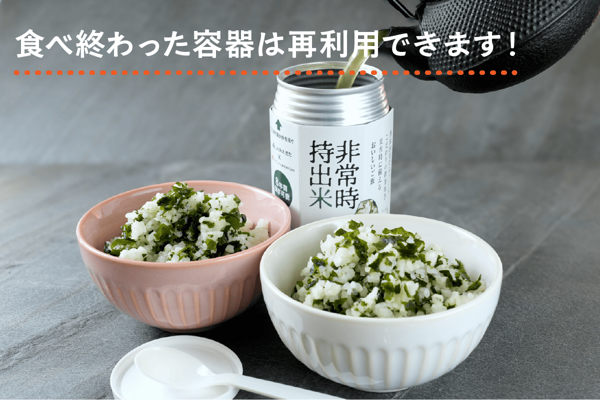 そこで生まれたのが「非常時持出米」「非常時持出米(わかめごはん)」
