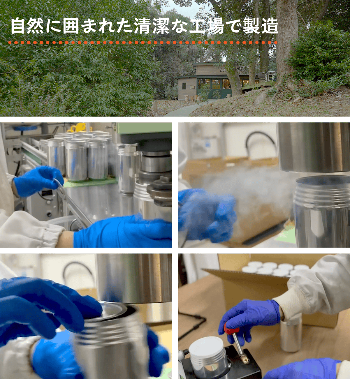炊飯した米を急速乾燥させることで、炊きたての風味と消化しやすい構造(α化)を維持した、保存食に最適なアルファ化米にしています。清潔な工場で丁寧に製造されており、窒素充填方式(特殊無酸素充填法/特許出願中)を採用しています。また、あらゆる場面を想定した耐久テストも実施されています。