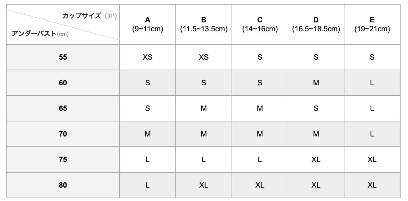 スポーツブラ サイズ表