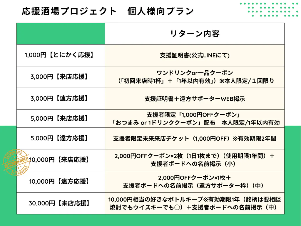 リターンは「モノ」だけではなくこのプロジェクトに「名前と想いを残すための証」でもあります。ぜひ一緒にこの挑戦の仲間になっていただけると嬉しいです。