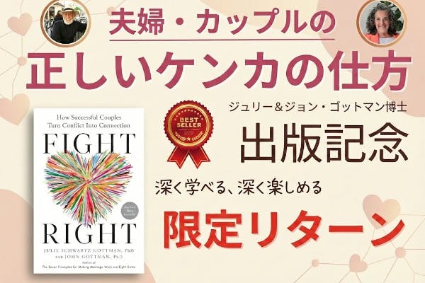 2013年、日本で初めてゴットマン夫妻のワークショップが開催されたとき、現場では何が起きていたのか。博士を招聘し、その場を支えた当事者の視点から、舞台裏や当時の日本のカップル支援の空気感、そこから静かに広がっていった影響を振り返ります。ゴットマン博士とはどんな人物なのか、なぜ今『夫婦・カップルの正しいケンカの仕方』を日本語で届けるのか。現在、そしてこれから夫婦・カップル支援に携わっていく方々とも語り合いたいテーマを元に、支援の現場を見つめ直します。