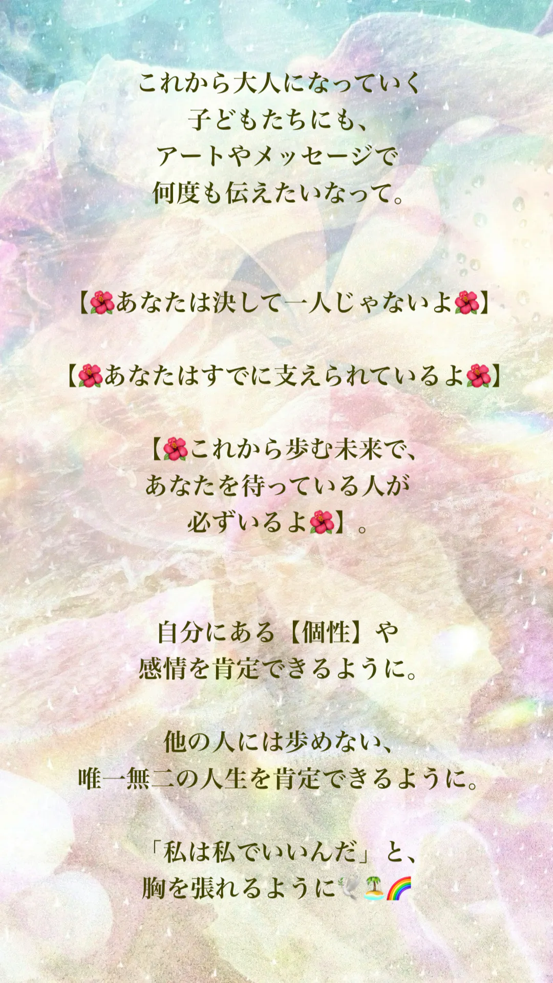 「心で味わう経験はぜんぶ、創るアートや紡ぐメッセージとして届けられる。。。」と、