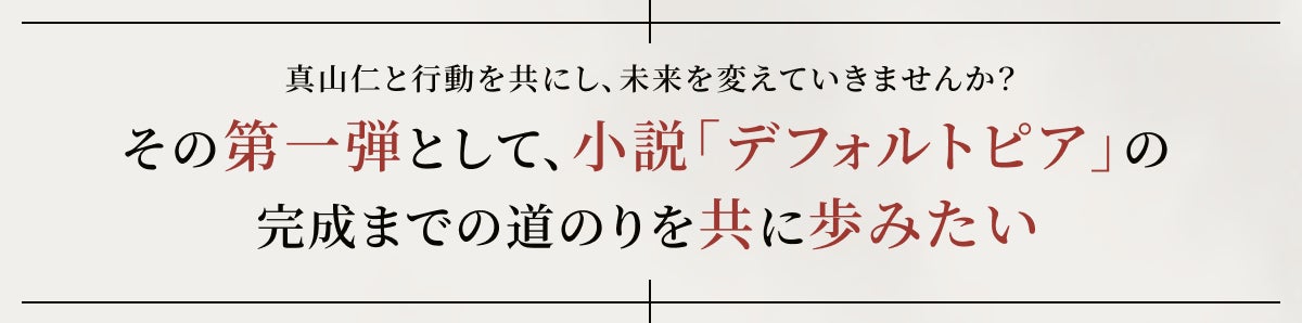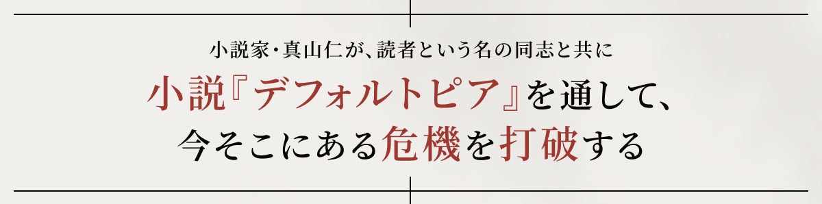 「真山さんの「日本に対する危機感」と「書き続ける勇気」と「次世代に対する責任感」。その3つが重なり合う次回作『デフォルトピア』の誕生を心待ちにしています」