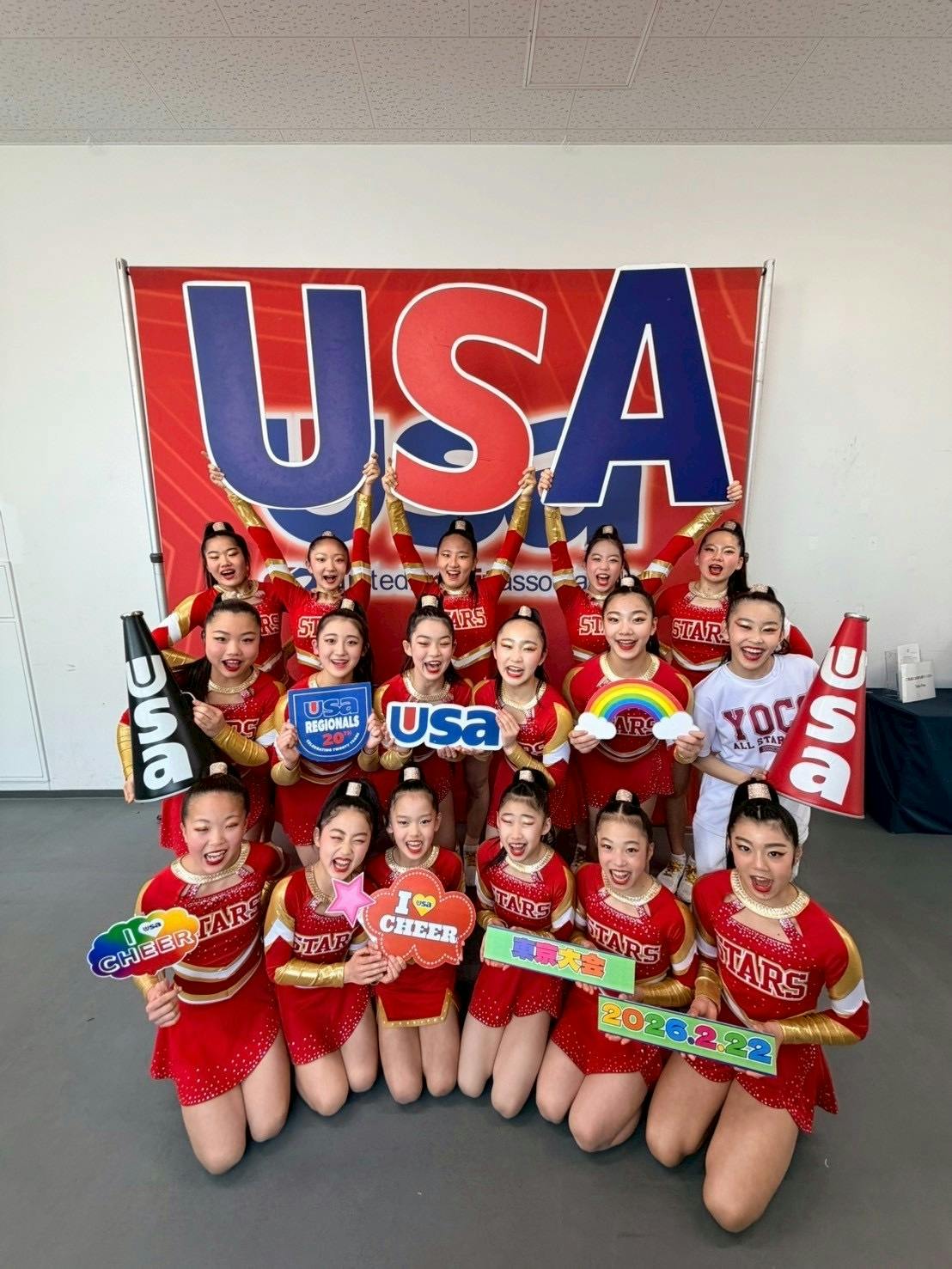 2026/02/24 22:002月22日、STARS Crystal GOLDは USA Regionals東京大会に挑みました。 この大会は、USA Nationals 2026への切符をかけた大きな関門。 そして同時に、これまで積み重ねてきた練習のすべてを「今できるベスト」として出し切る舞台でもありました。本番前、子どもたちは、 「やってきたことを信じたい」 「絶対にやり切る」 という強い意志を持っていました。スタンツ、タンブリング、ダンス、表現力。 どのシーンも、これまで練習を積み重ねてきた成果を発揮することができ、会場の空気を引き込む演技ができたかと思っています。目標としていた 「98点以上を獲得」には至りませんでしたが、子どもたちが掲げてきた目標を視界に捉えられる結果となりました。そして目標としていたUSA Nationals 2026への進出が決定しました。既にNationals進出を決めているAMBERチームと共に、2チームで全国大会の舞台に立つことができます。これは偶然ではなく、 毎日の努力の積み重ね、仲間を信じる力、そして「もっと強くなりたい」という気持ちが生んだ結果です。Regionalsは通過点。 子どもたちはすでに次を見ています。* Nationalsでどんな演技を見せたいか* どこを伸ばすべきか* どうすれば世界に届くチームになれるか* 応援してくれる方々にどうやって恩返しができるかSTARS Crystalは、またひとつ大きく成長しながら、次のステージへ進みます。東京大会当日は、会場から本当に沢山の大きな声援をいただきました。皆様の声援が私たちの大きな力となり、強い気持ちで本番を迎えることができました。応援してくださった皆様に心より御礼申し上げます。ありがとうございました。もっともっと皆様に応援されて愛されるチームとなれるよう、チーム一丸となって前進していきます。引き続き、温かい御声援をよろしくお願いいたします。 もっと見る